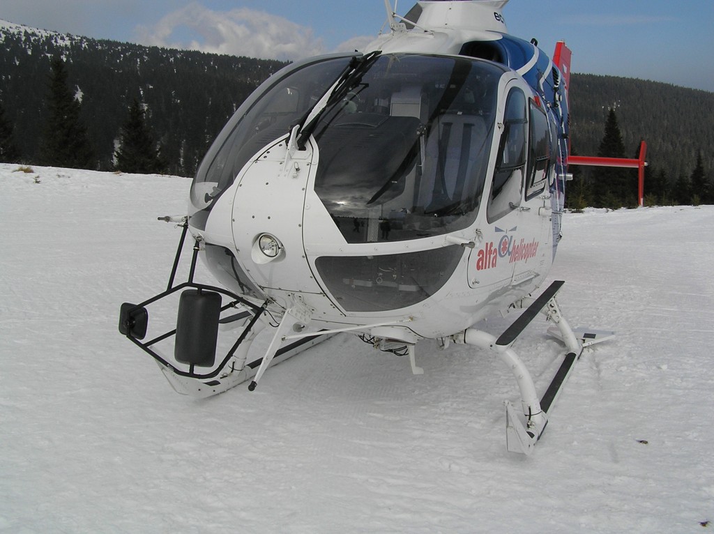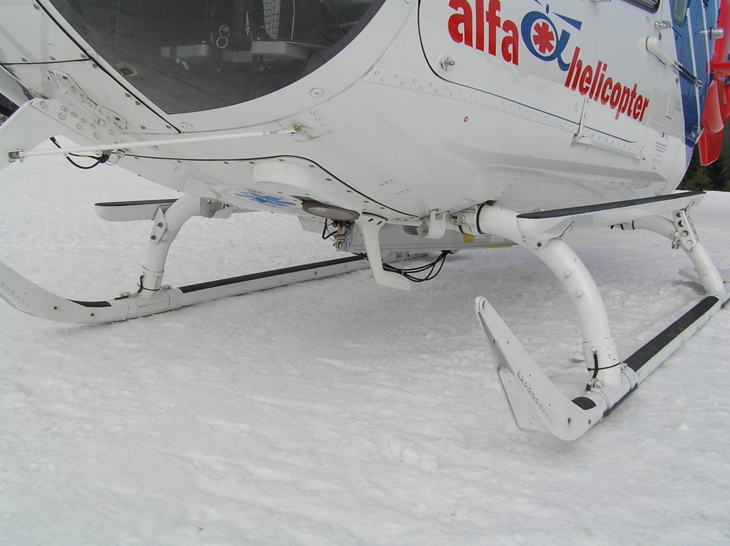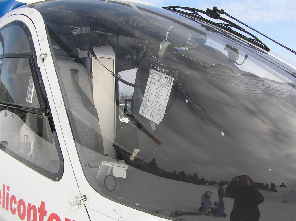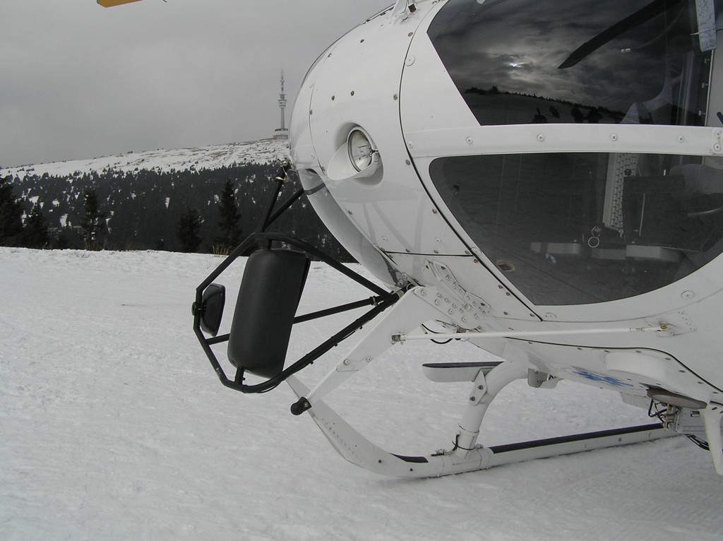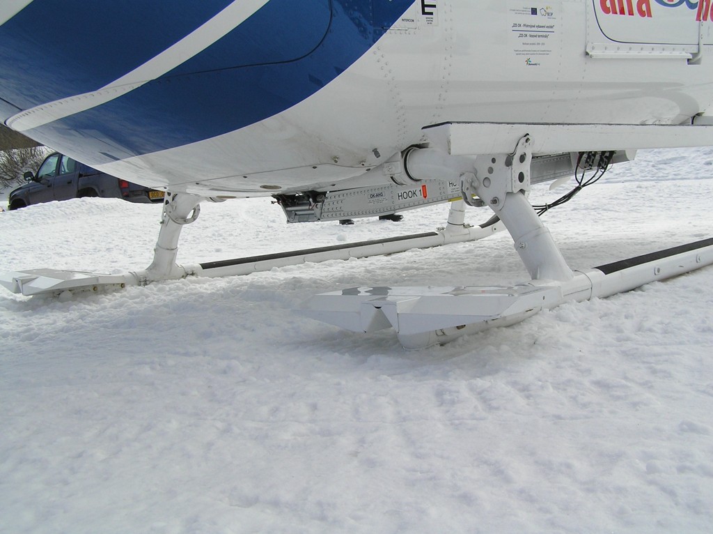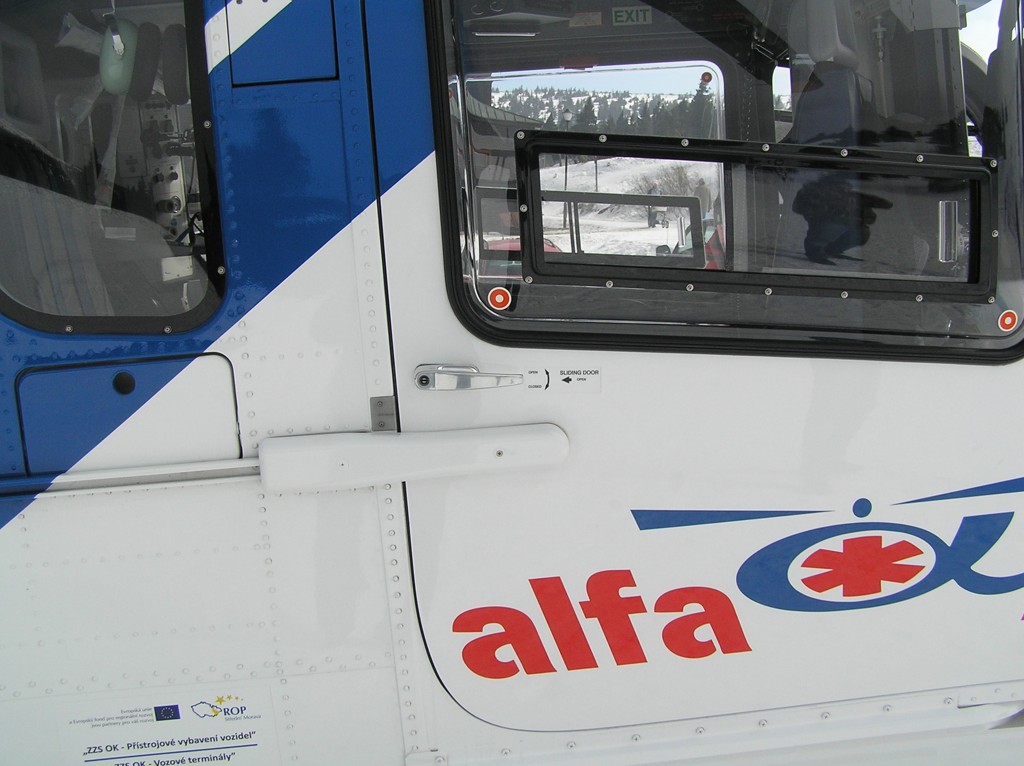Lyžování na Pradědu přineslo nakonec své ovoce. EC-135 olomouckých záchranářů byla přítomna naštěstí jen kvůli cvičení. (Nafocený interiér a další fotografie toho samého stroje naleznete v galerii Moniky Maratové.)