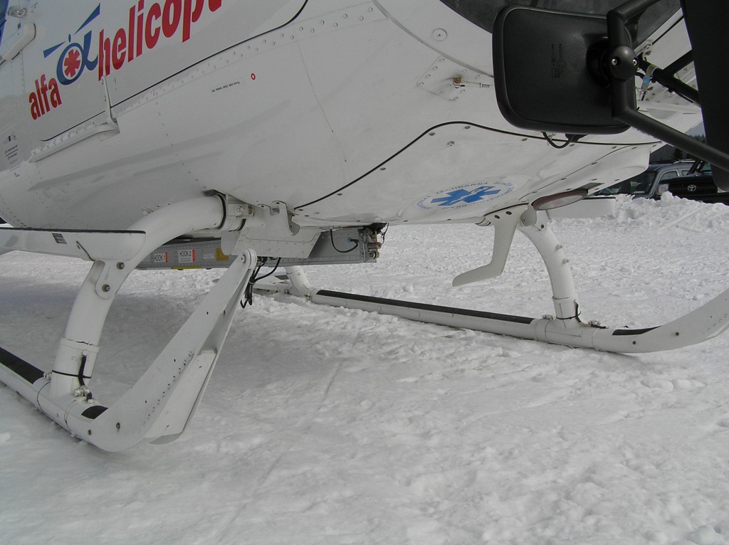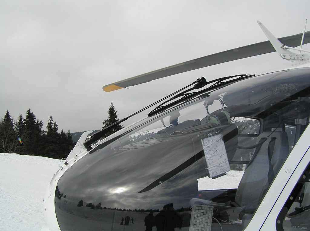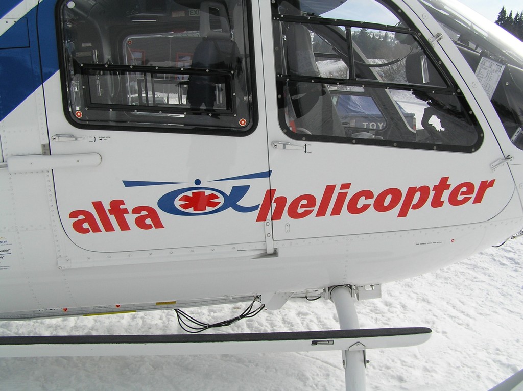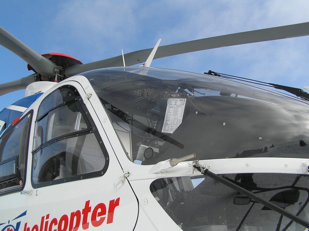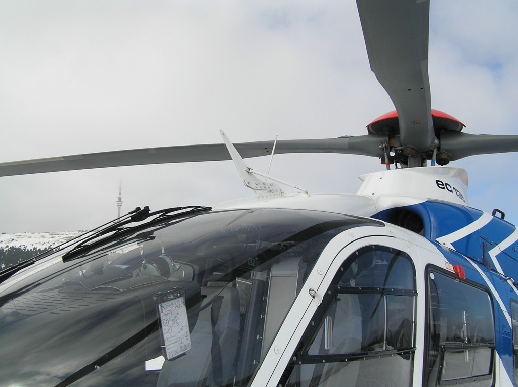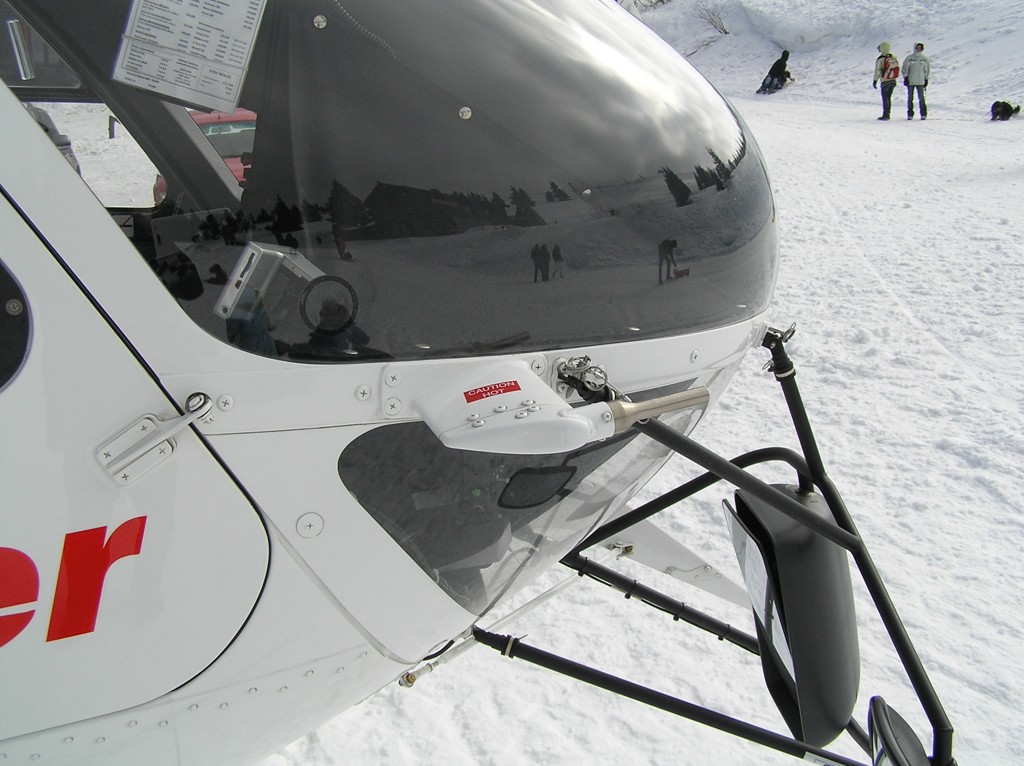 Lyžování na Pradědu přineslo nakonec své ovoce. EC-135 olomouckých záchranářů byla přítomna naštěstí jen kvůli cvičení. (Nafocený interiér a další fotografie toho samého stroje naleznete v galerii Moniky Maratové.)