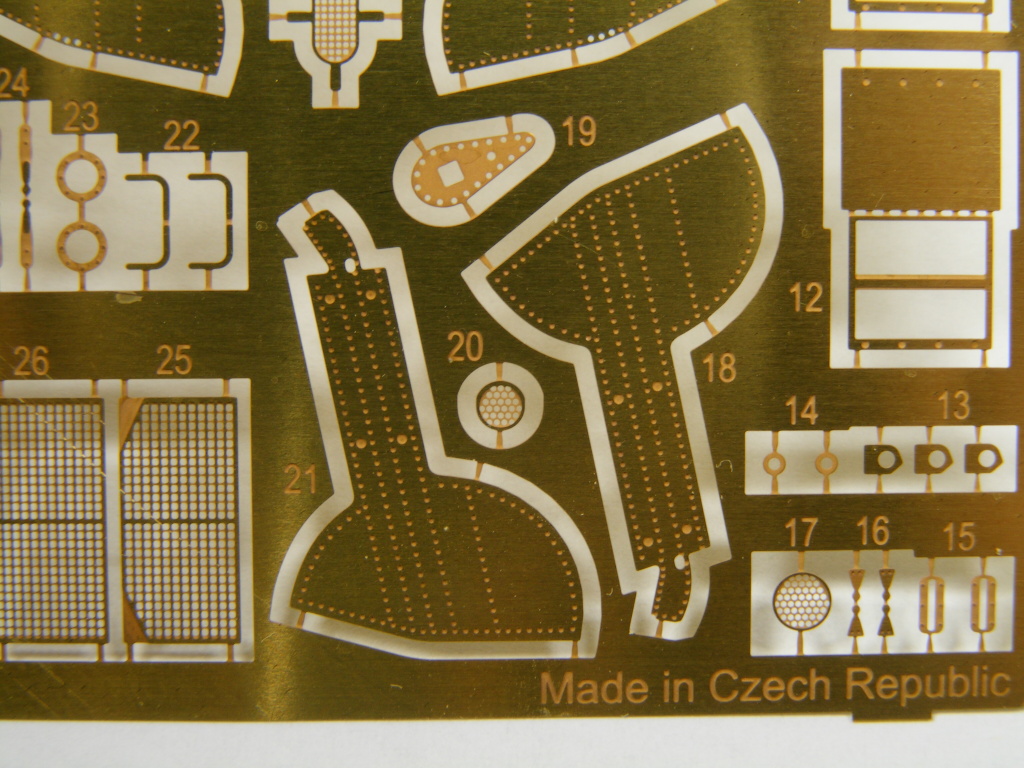 Těžištěm této sady jsou podvozky a jejich šachty - v nich doplníme nová dna s jemnějšími detaily, na nohy doplníme hadičky brzdového vedení a složíme nové kryty podvozku. Set neopomíjí i oba chladiče, do kterých zasadíme nové mřížky a nahradíme regulační klapku. V sadě nalezneme i nové kryty zbraňových šachet, které stavebnice nabízí v otevřené podobě. Dále obsahuje drobnosti typu táhla vyvážení SOP, detaily anténního sloupku a nové zpětné zrcátko...