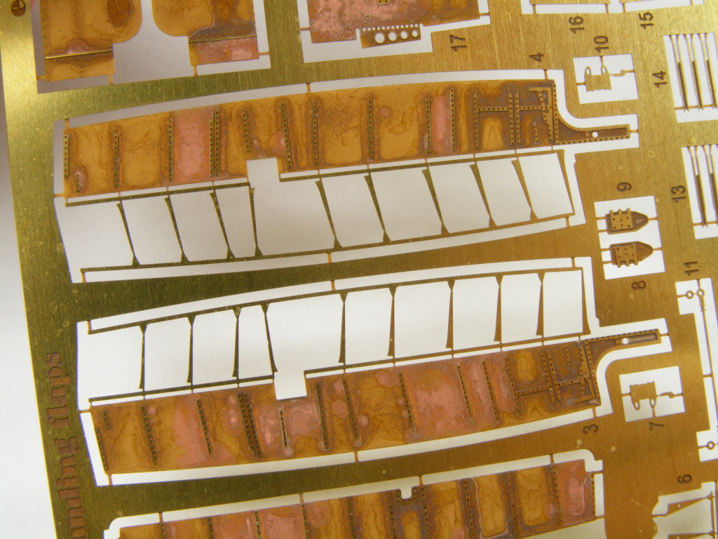 Od tohoto sety můžeme (překvapivě) očekávat přesně to co má v názvu-tj. přistávací klapky a jejich prostor v křídlech. Oproti starším sadám obsahuje i díly k „ucpání“ pohledu do trupu. Též mě zaujalo, že díly táhla sestavujeme z více plastičtějších dílů a tato partie již není řešena jedním placatým dílem.