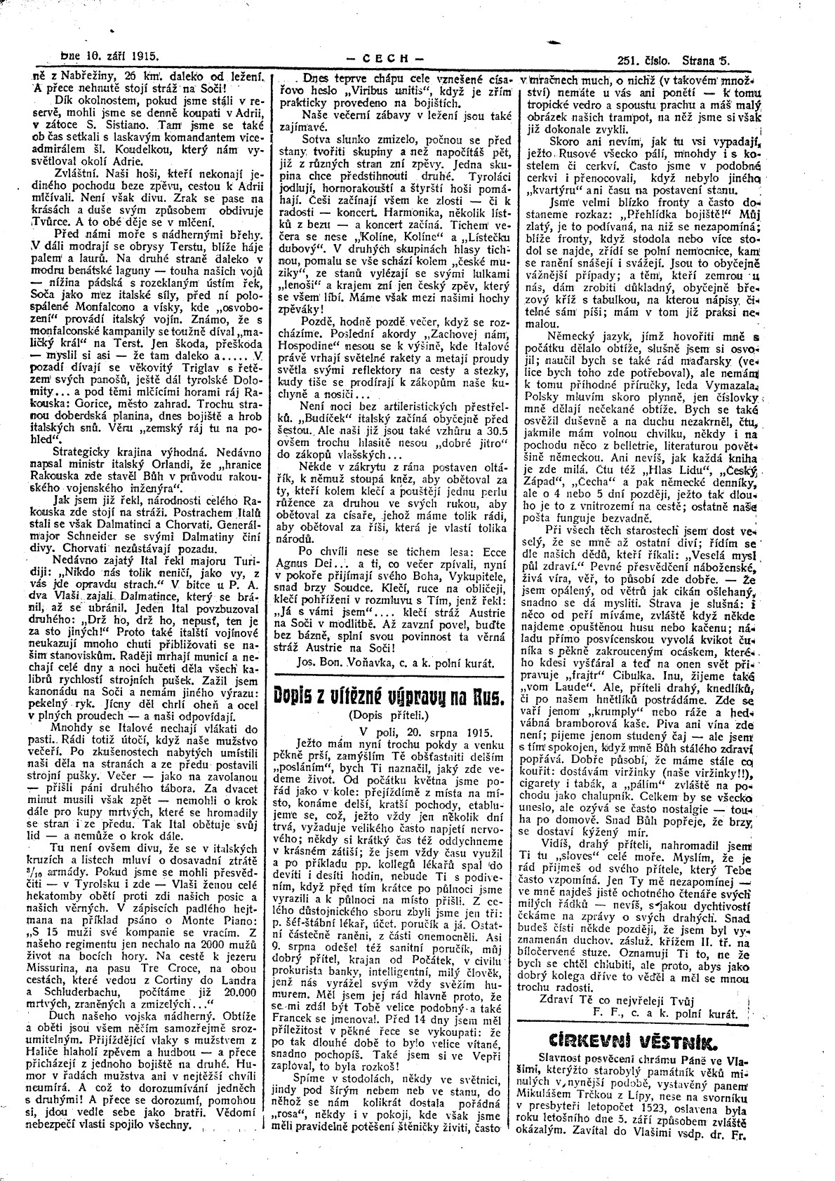 10.9.1915 - Pátek - Německé dělostřelectvo bombarduje frontu