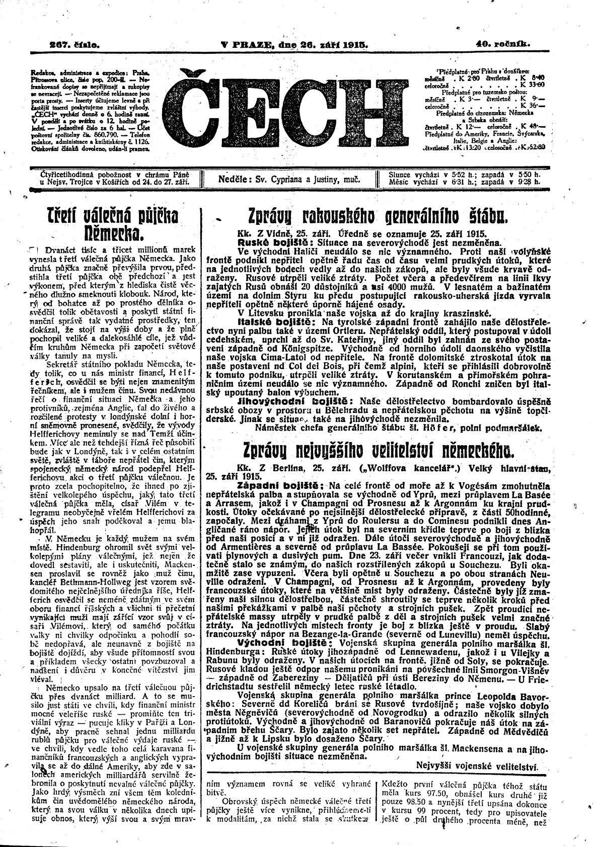 Britové se brání protiútokům v okolí Loos. Francouzi útočí u Champagne, zajali 16 000 vězňů, Britové 2 600 vězňů, 9 děl atd...