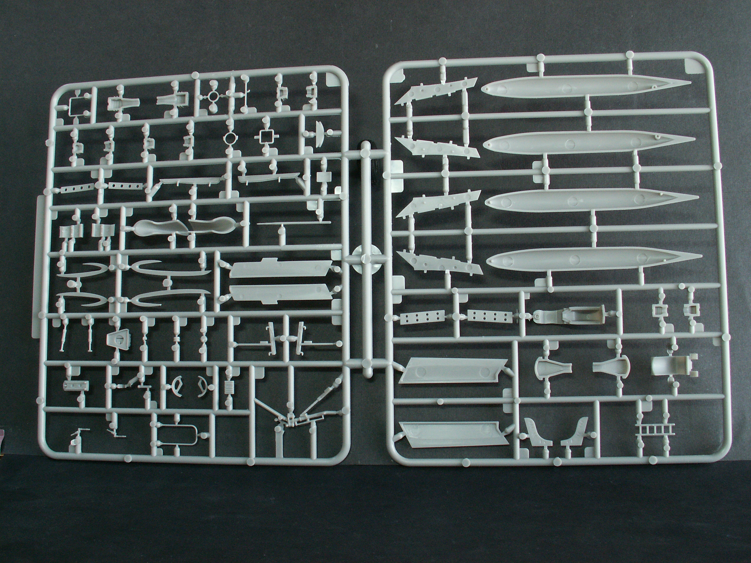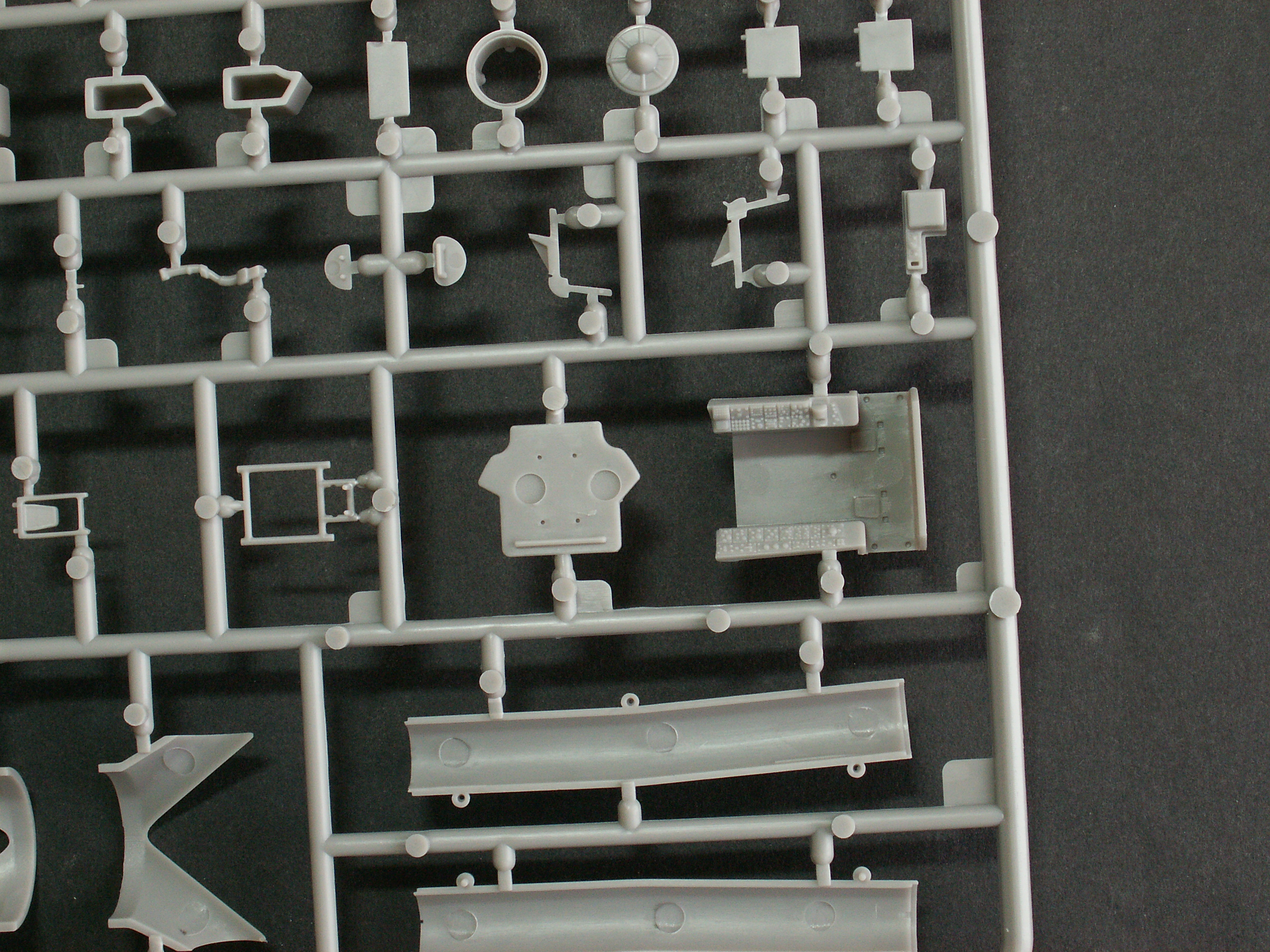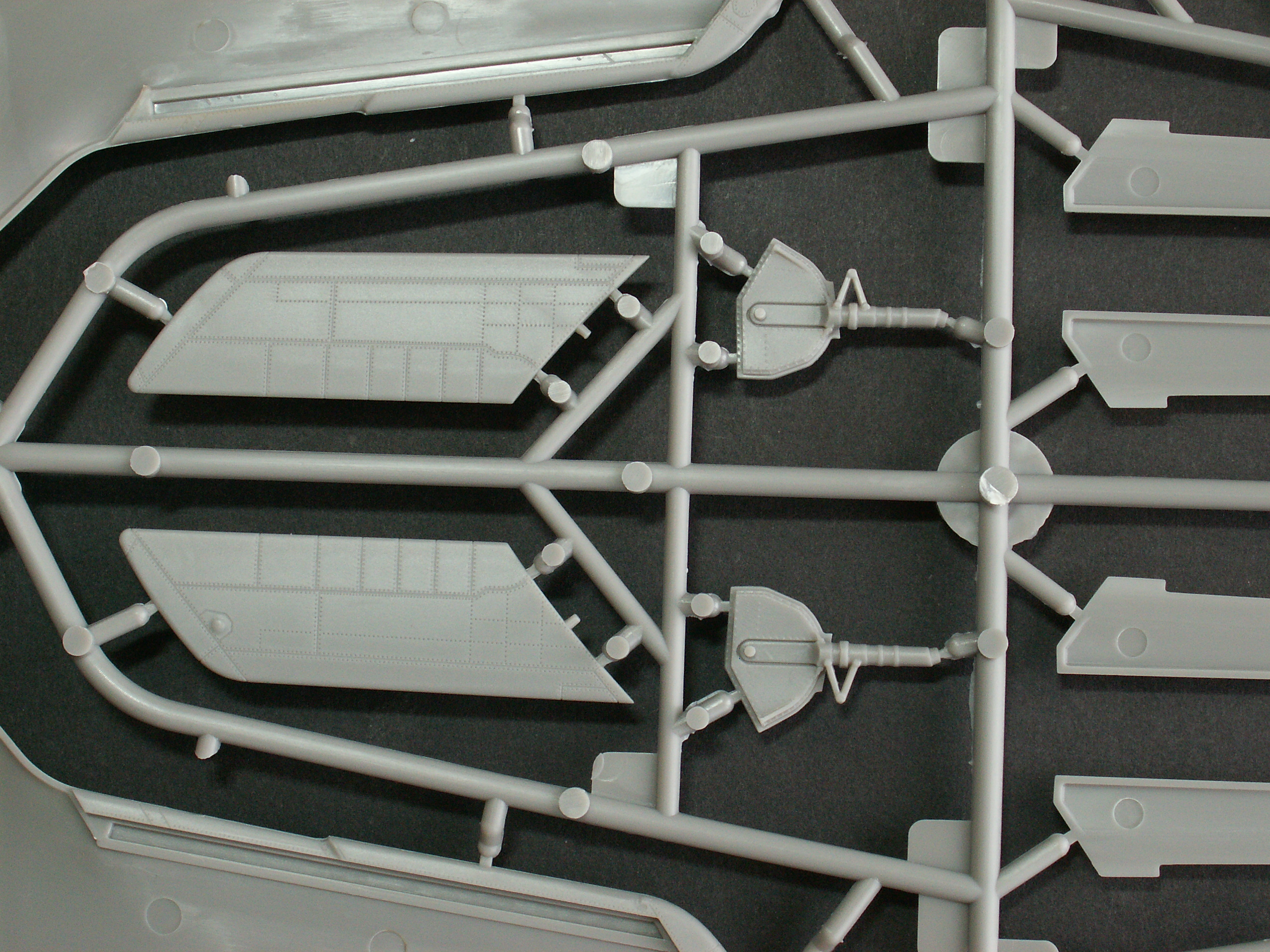První rámeček, označený písmenem A, obsahuje výlisky polovin trupu, dna podvozkových šachet, podvozková kola, kryty prostor kamer nebo brzdící štíty.