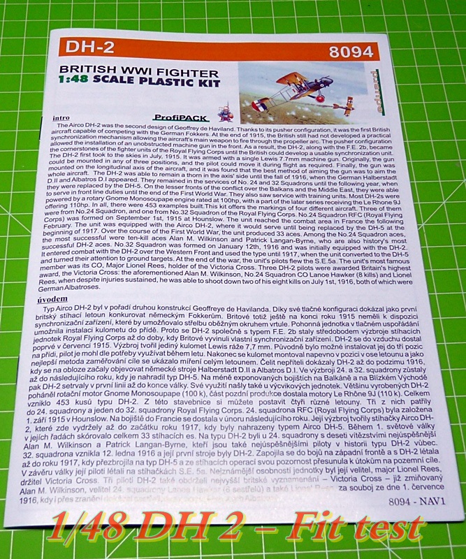 To se stalo i s jednou z nejznámějších stavebnic Eduardů - stavebnicí modelu letounu Airco DH-2 v měřítku 1/48.