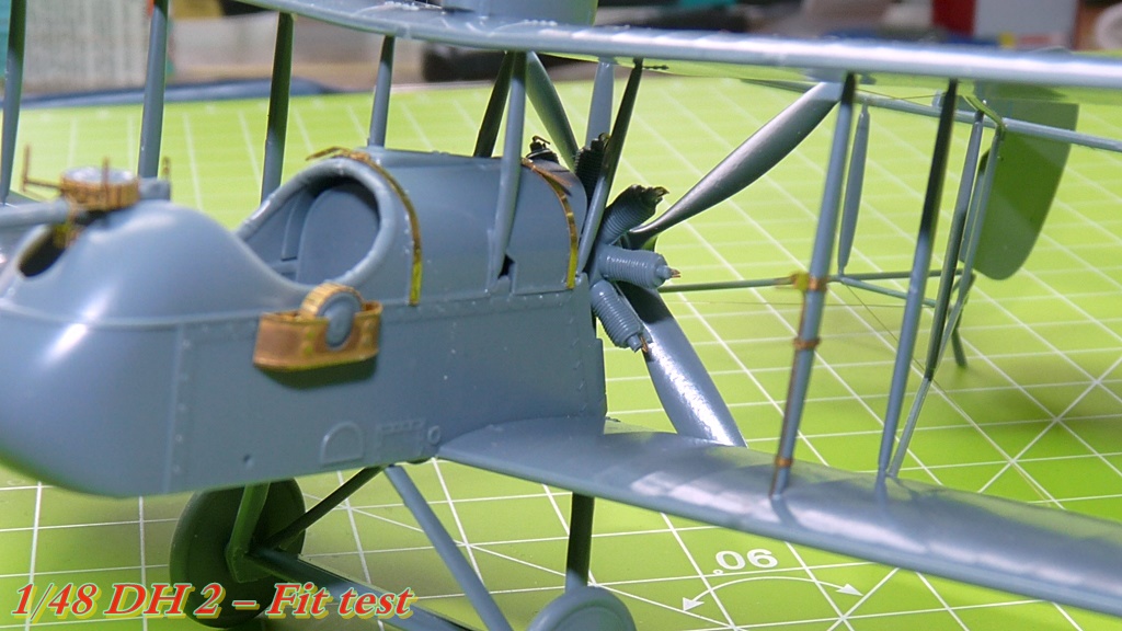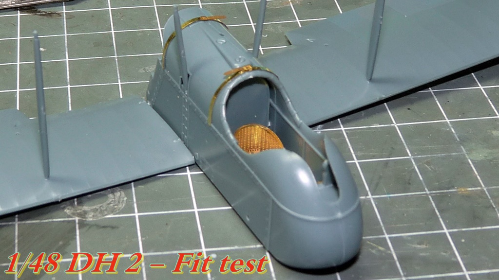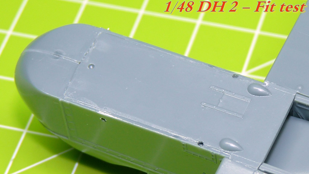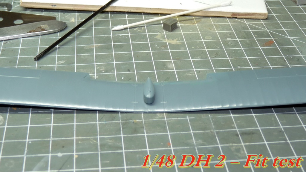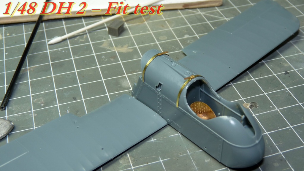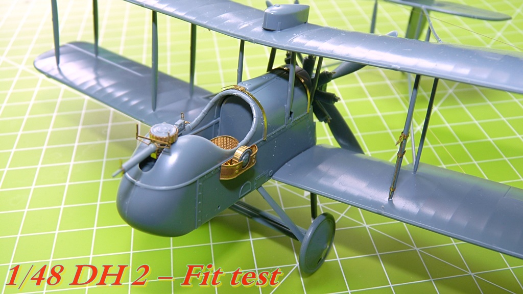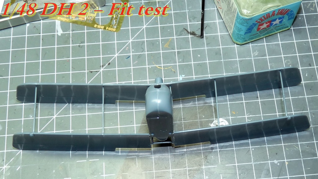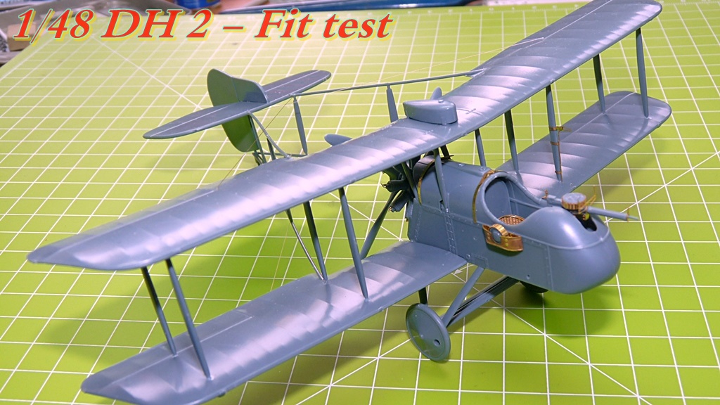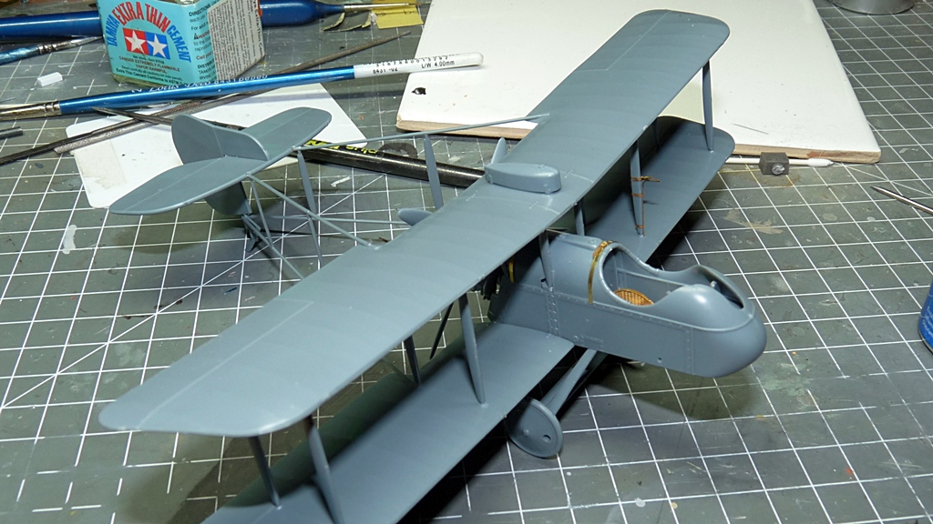 Díky absenci zadní části trupu a hornímu křídlu v zákrytu se spodním se dá křídlo přilepit bez použití stavebního stojánku (dokonce bych řekl, že to bez něho možná bude jednodušší) jen tak, že trup s křídly, na kterých jsou nalepeny přední vzpěry postavíme na "zadní" čumákem letounu nahoru, přiložíme horní křídlo, přilepíme jej a necháme proschnout. Poté opatrně nalepíme zadní vzpěry a voilà, je hotovo.