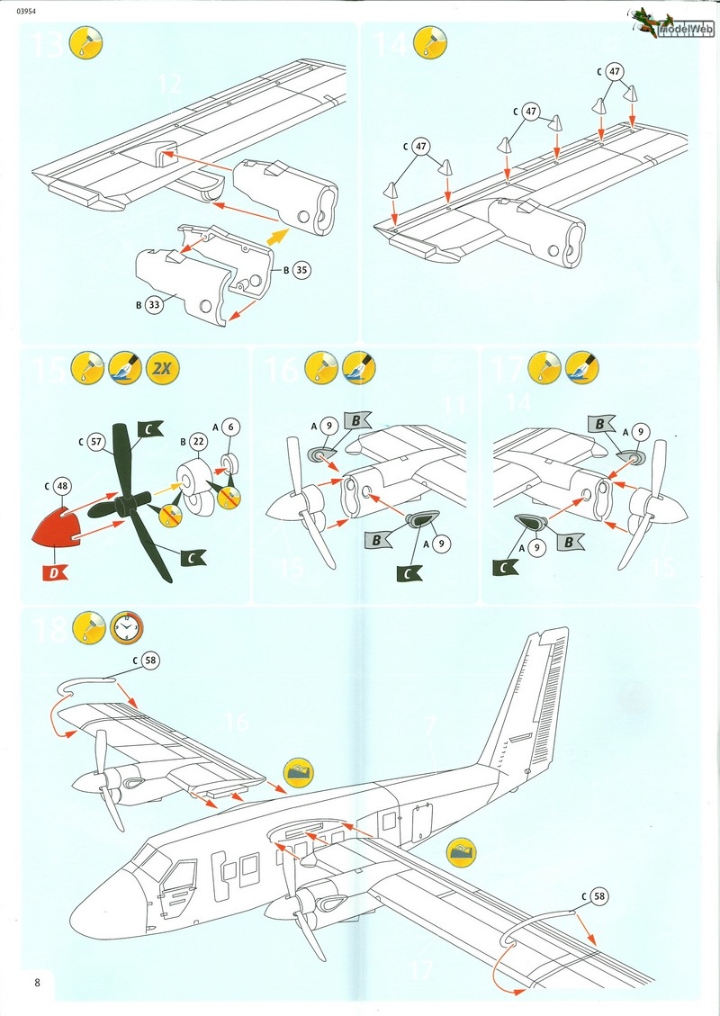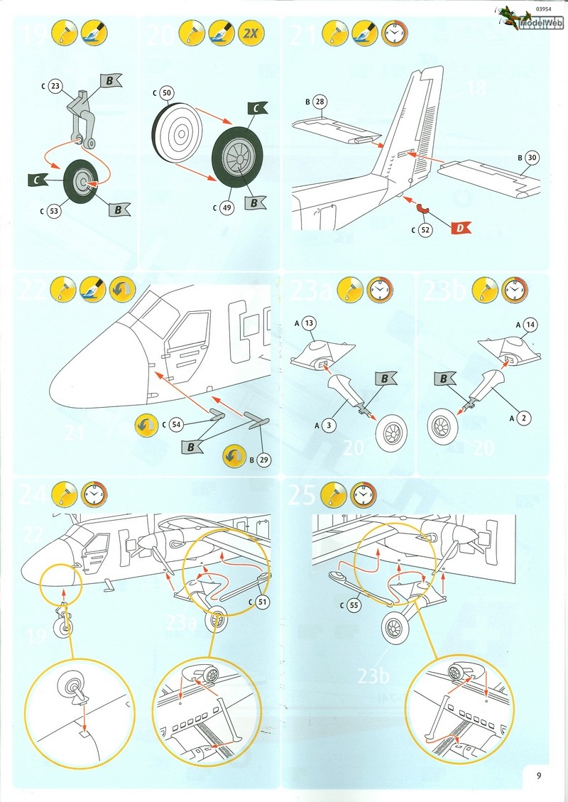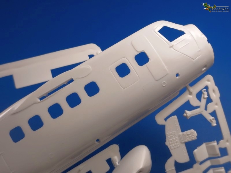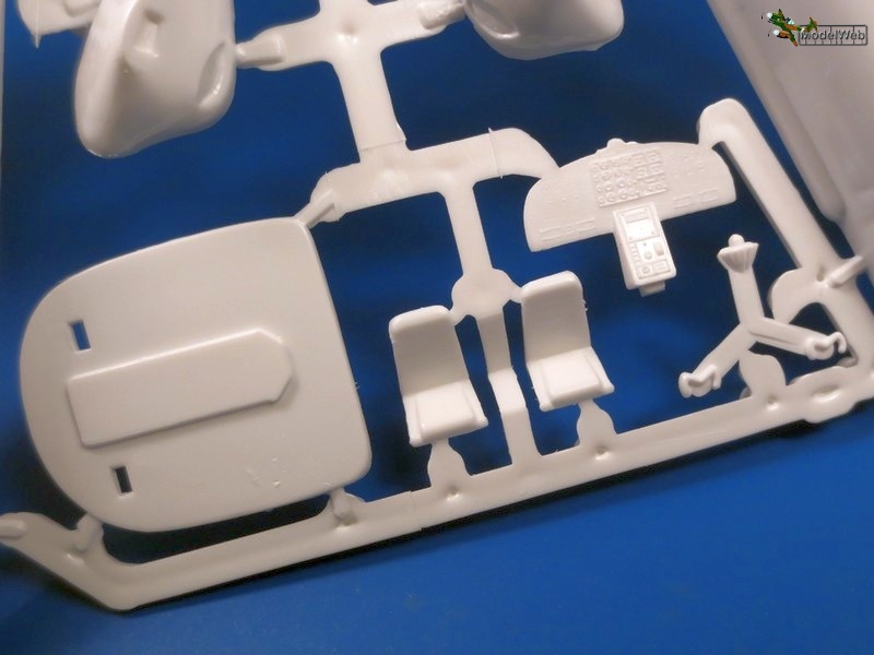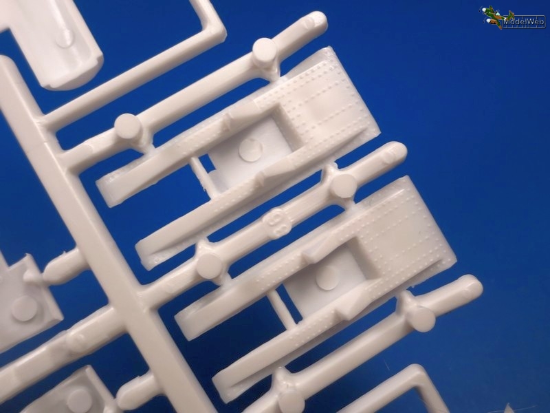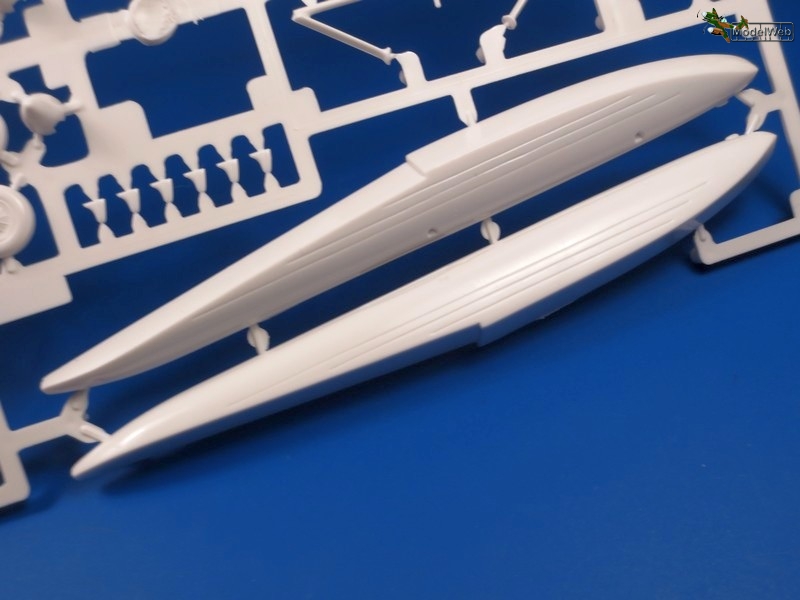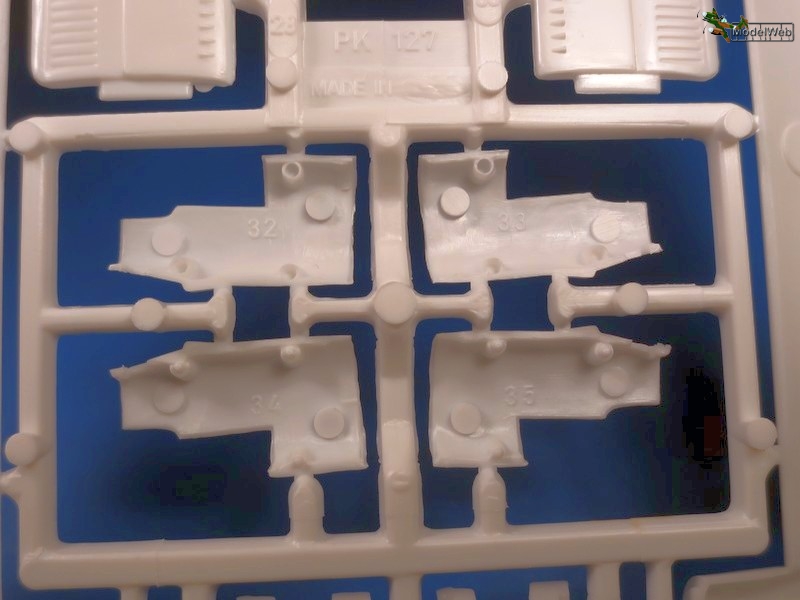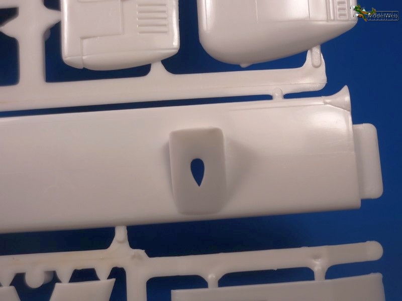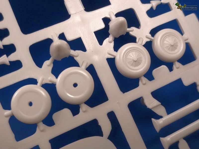 Přestože se jedná o poněkud starší model, výlisky nevykazují zásadnější chyby. Vidíme drobné otřepy, zvláště na menších dílech, třeba vrtule, ale to není neřešitelné. Naznačení paneláže však není moc výrazné a také ho není mnoho - výkres, fotky a přerytí asi nebude tak úplně od věci. Naopak jiné detaily, například směrovka, jsou velice povedené.
