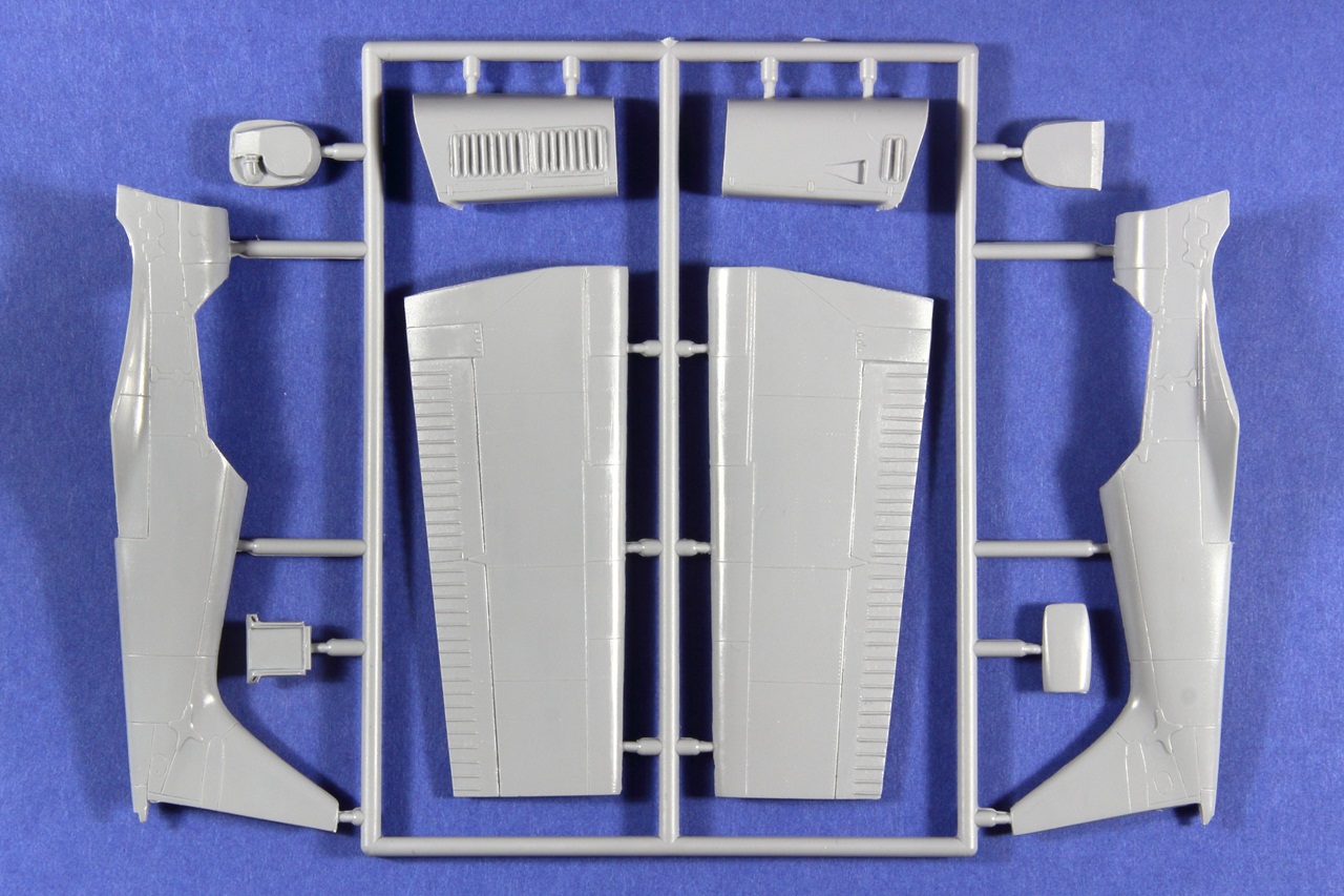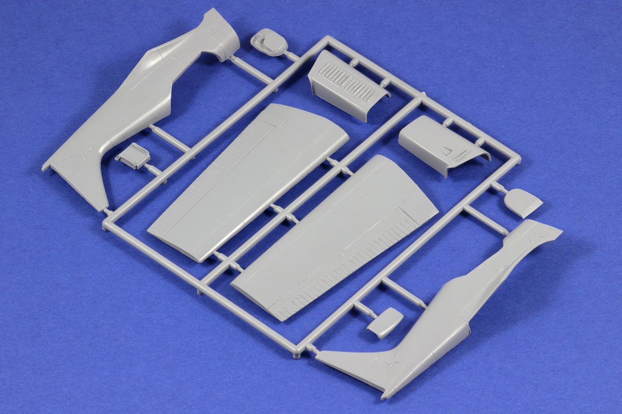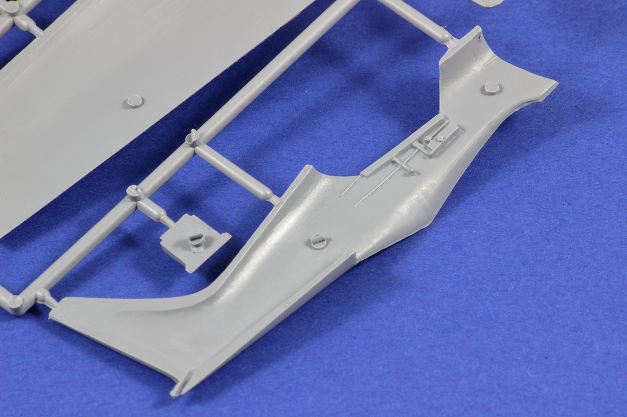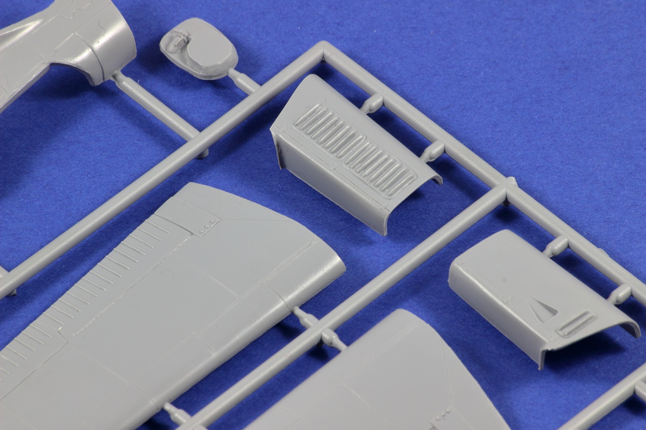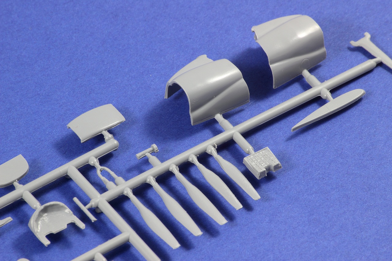 Všechny rámečky jsou z šedého plastu. Díly mají místy snadno odstranitelné otřepy. Nejmenší rámeček má lehce posunutou dělící rovinu a bohužel se na tomto rámečku nachází kola. Ale jedná se pouze o cca 2 desetiny milimetru, tudíž s opravou nebude moc práce.
