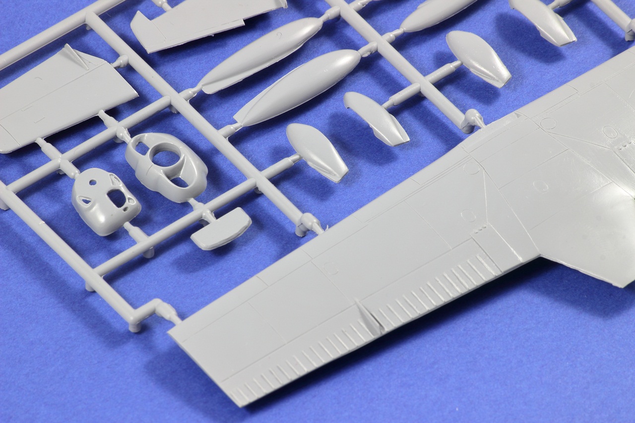 Negativní rytí je pěkné, ostré a hluboké, kromě místa u přechodu křídlo-trup u odtokové hrany spodní strany křídla, které je mělčí, ale stále dobré. Celé letadlo je pokryto negativními nýty, které se bohužel místy ztrácí nebo jsou moc mělké.
