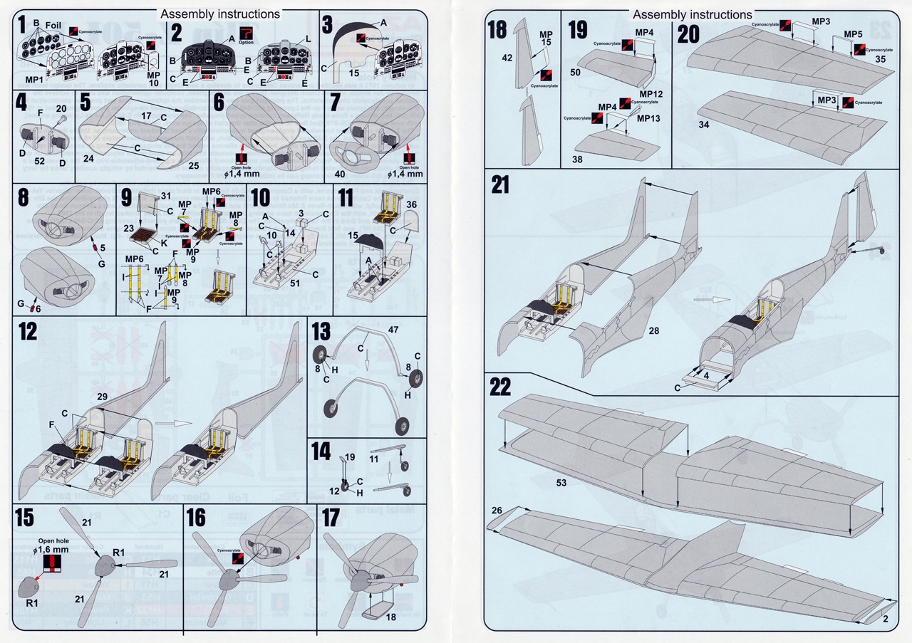 Skládá se z jednoho barevného dvojlistu. Na první straně najdeme historii stroje v anglickém jazyce, kresby rámečků s přiřazenými čísly k dílům a legendu použitých symbolů a barev. Na dalších stranách se nachází samotná stavba.