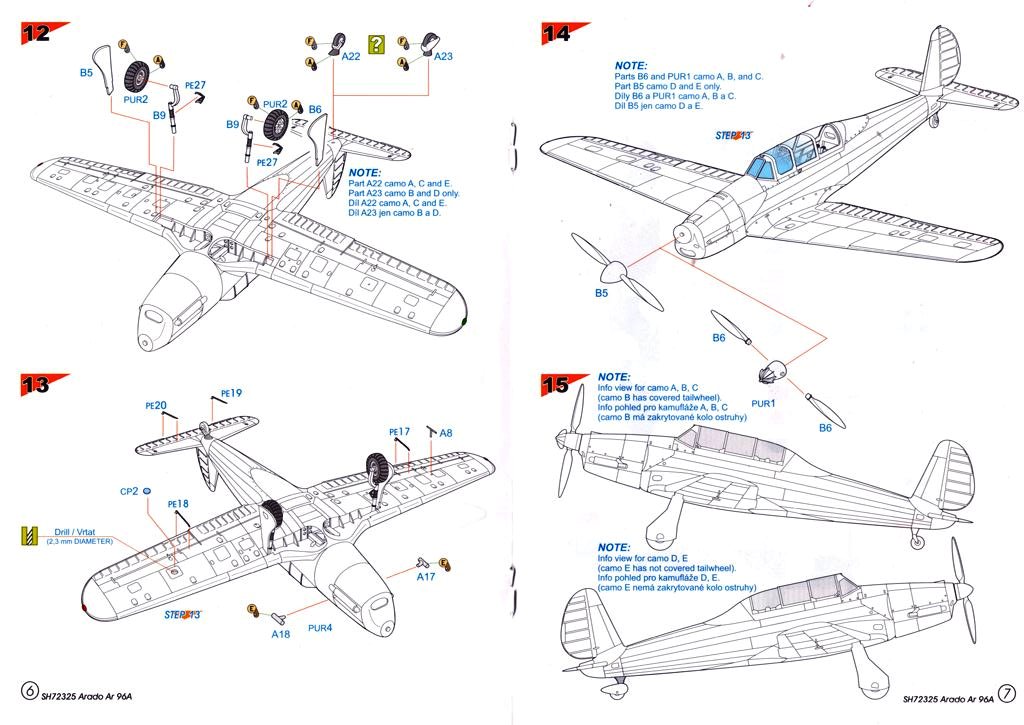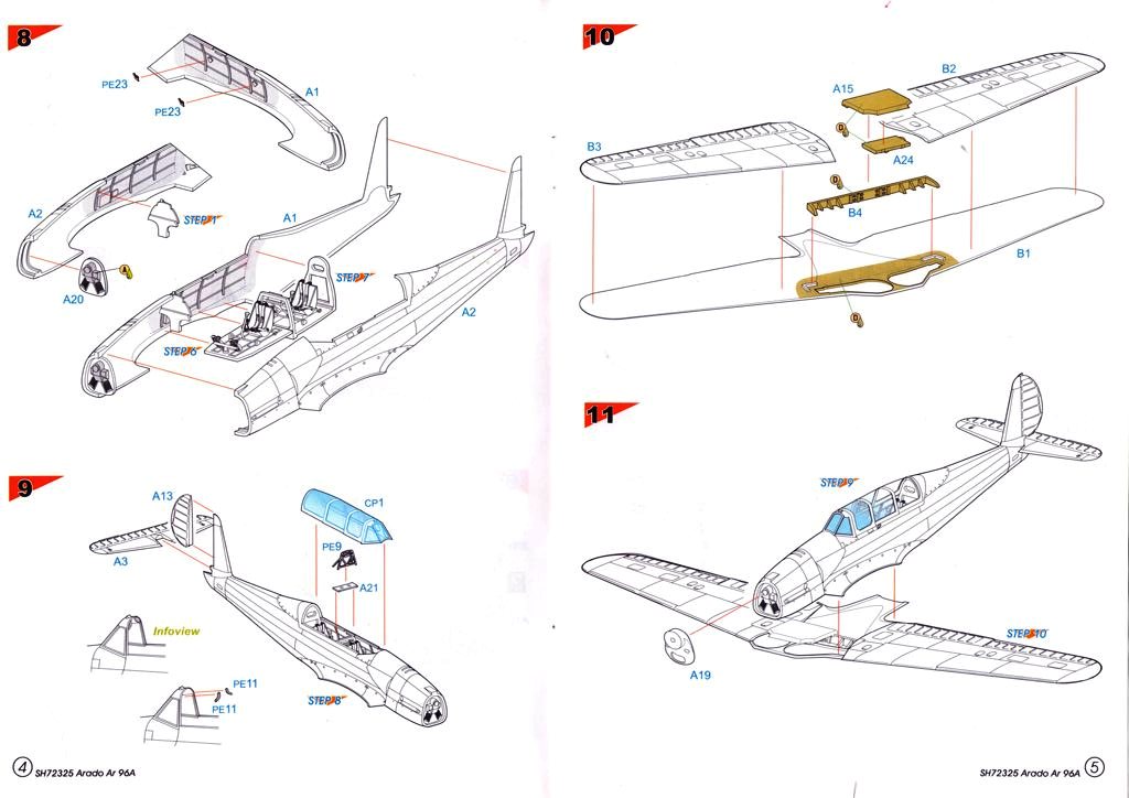 Jak rámeček A, tak rámeček B jsou nové. Nejsou použity výměnné vložky. Ono totiž Arado Ar 96A mělo proti pozdějšímu Ar 96 B jinou pozici trupu vůči křídlu (to souviselo s posunem těžiště při použití těžšího motoru v Ar 96B). Díky tomu jsou trupy i křídla jiné. Shodný je pouze rámeček čirých dílů.