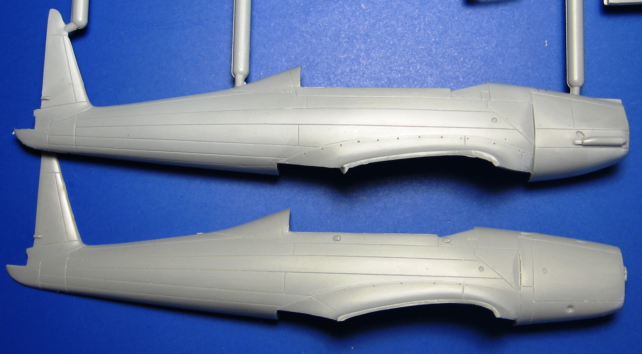 Jen pro zajímavost jsem vyfotil i rozdíly mezi výlisky trupu z této stavebnice a výlisky trupu ze stavebnice Avie C-2.