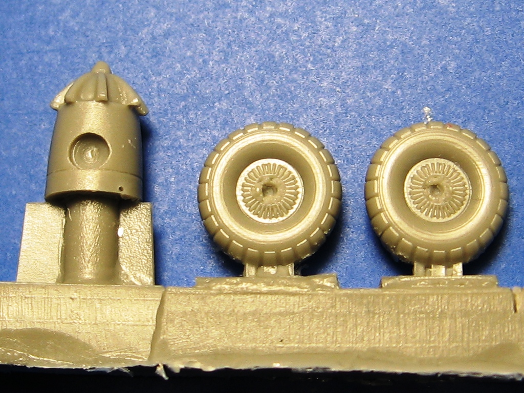 Resiny obsahuji kužel s větrníkem stavitelného mechanismu na kterém jsem našel bublinku a kola hlavního podvozku. Až na zmíněnou bublinku jsou kvalitně odlity.