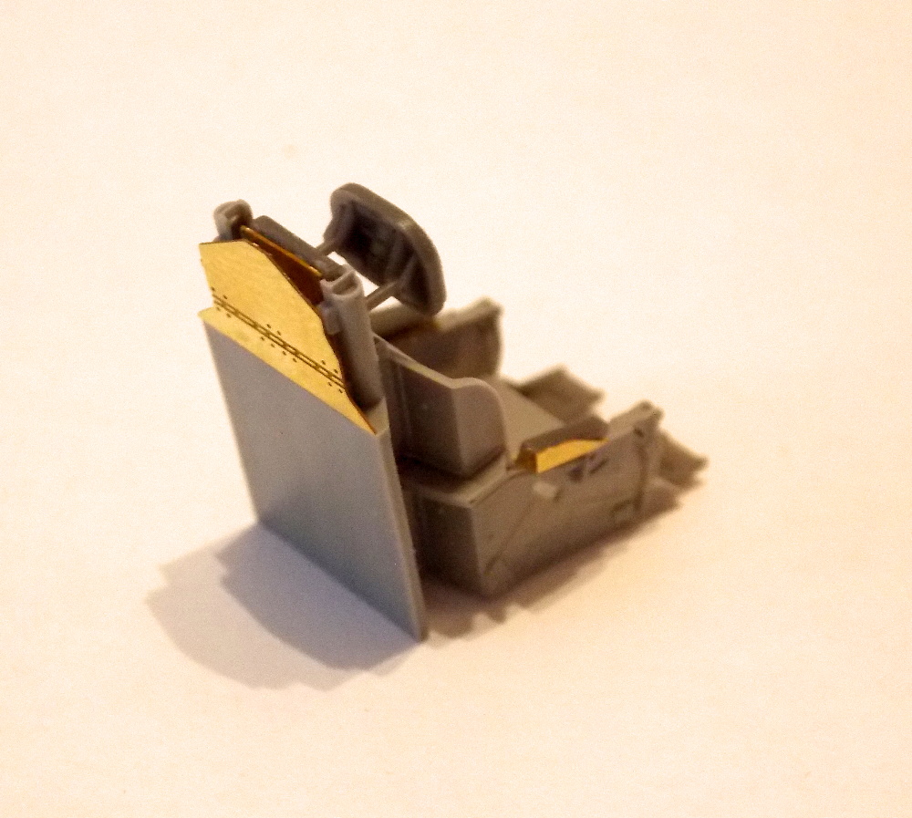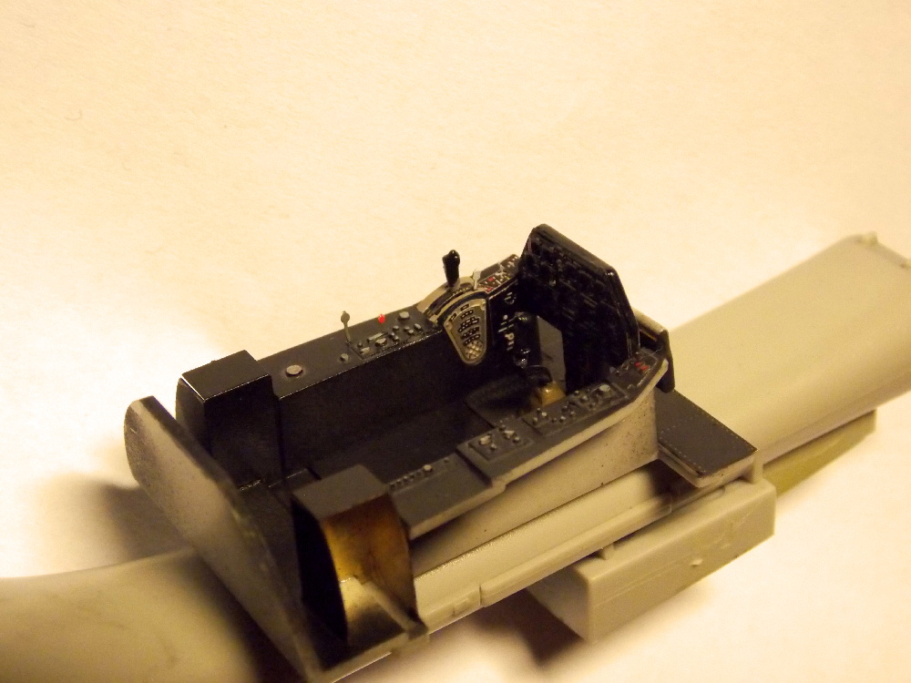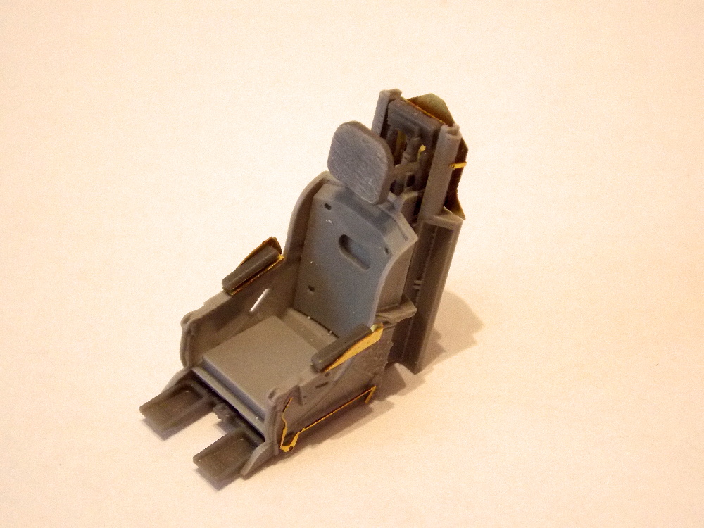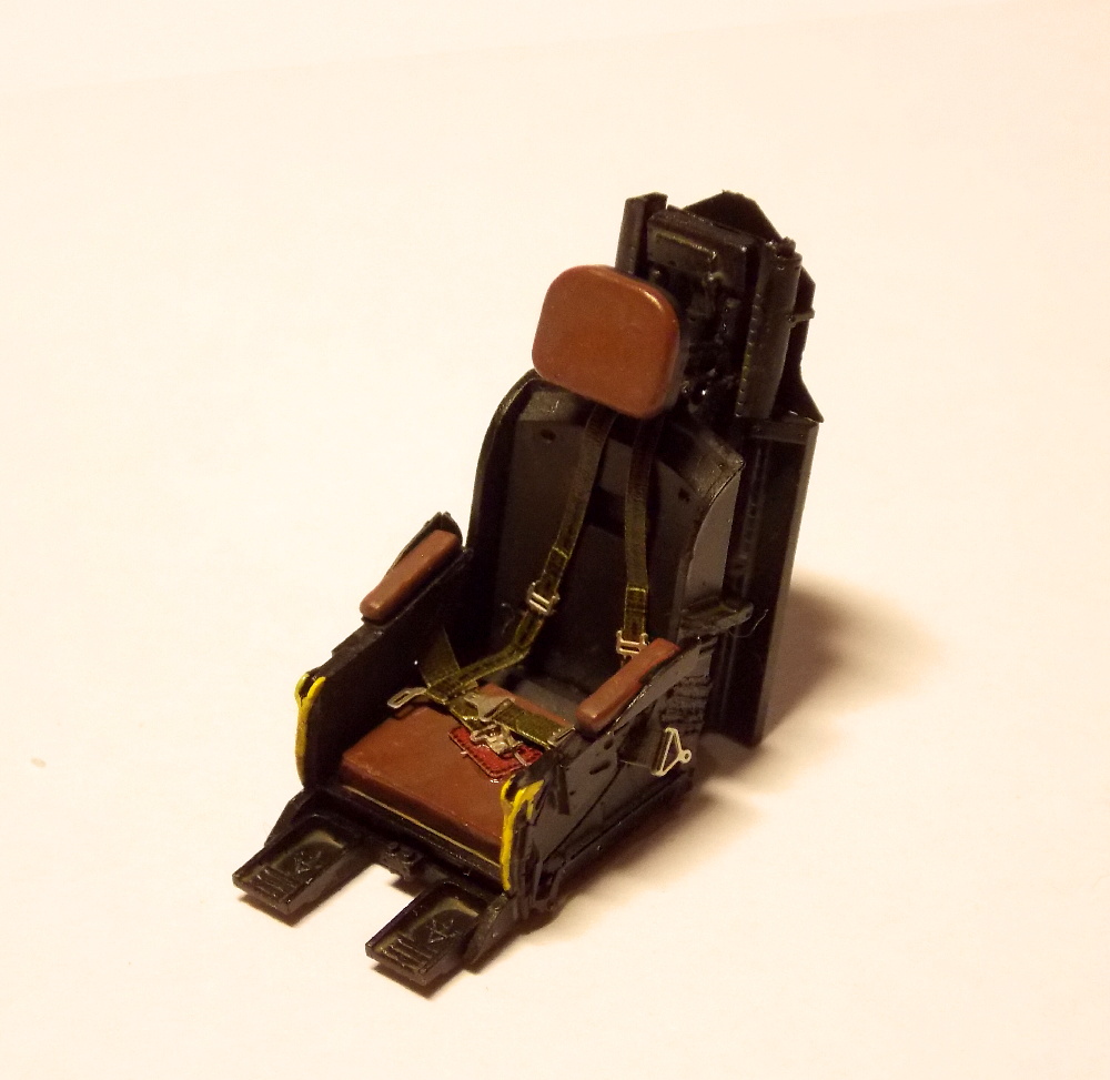Sedačku pilota jsem doplnil leptanými díly, nabarvil podle fotek, osadil poutacími pásy a napustil washem.