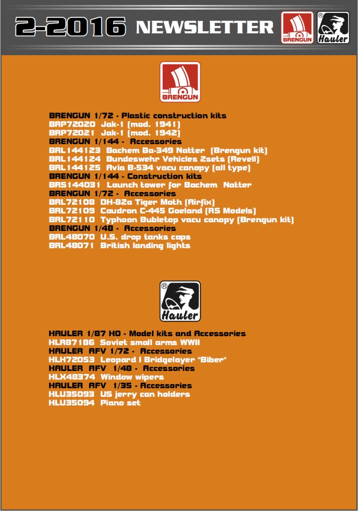 Firmy Hauler a Brengun nám zaslaly náhledy novinek na měsíc červen 2016.