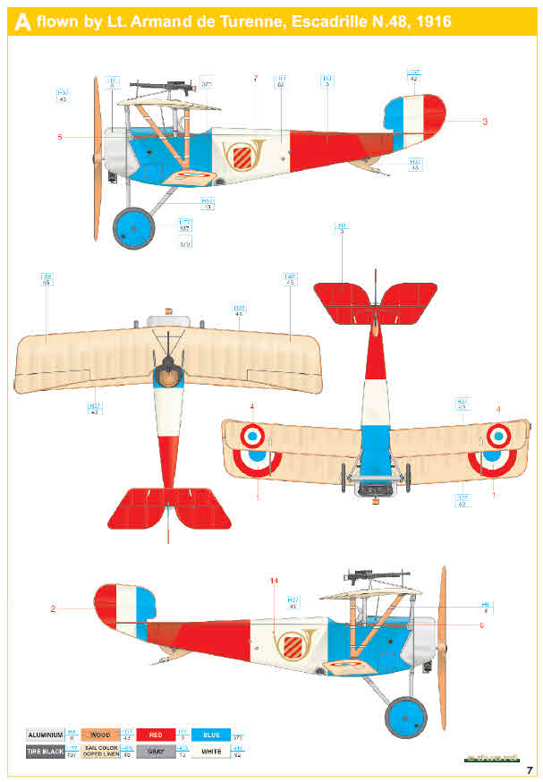 - Stroj Raoula Lufberyho od Esc 124 (tzv. Escadrille Américaine, později přejmenované na Escadrille Lafayette), jednotky amerických dobrovolníků. Lufbery, syn amerického otce a francouzské matky, byl jedním z nejúspěšnějších pilotů Esc 124, v roce 1918 velel slavné 94th Aero Squadron. Do své smrti v květnu 1918 dosáhl 16 sestřelů. Emblém na boku letounu jsou stylizované Lufberyho iniciály. Pokud budete stavět tento stroj, bude potřeba doplnit ještě zrcátko, kterým byl Lufberyho letoun vybaven.
