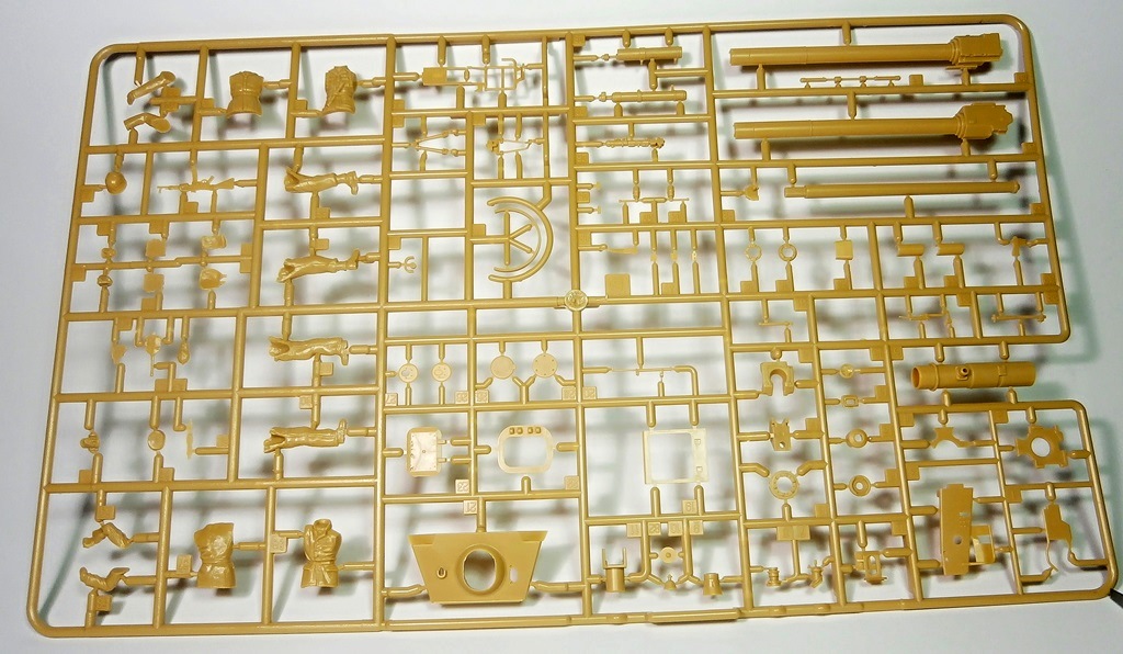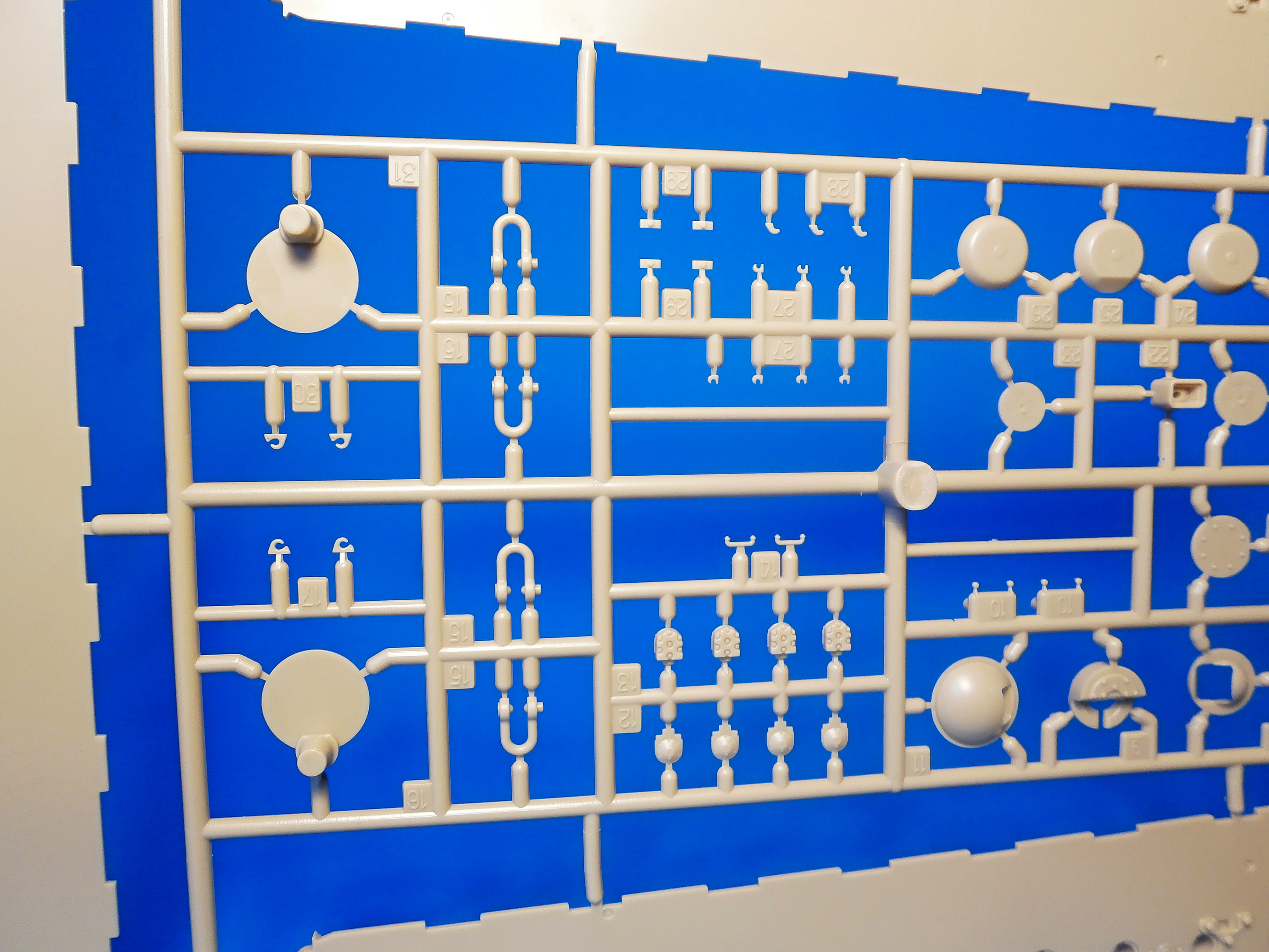Všechny díly jsou odstříknuty čistě bez kazů a mají ostré detaily. Občas se objeví dělící rovina, kterou však odstraní pouhé shrnutí skalpelem. Na některých součástkách jsou i po nalepení viditelné stopy po vyhazovačích, které bude třeba zatmelit. Propadliny jsem našel pouze na poklopech korby.