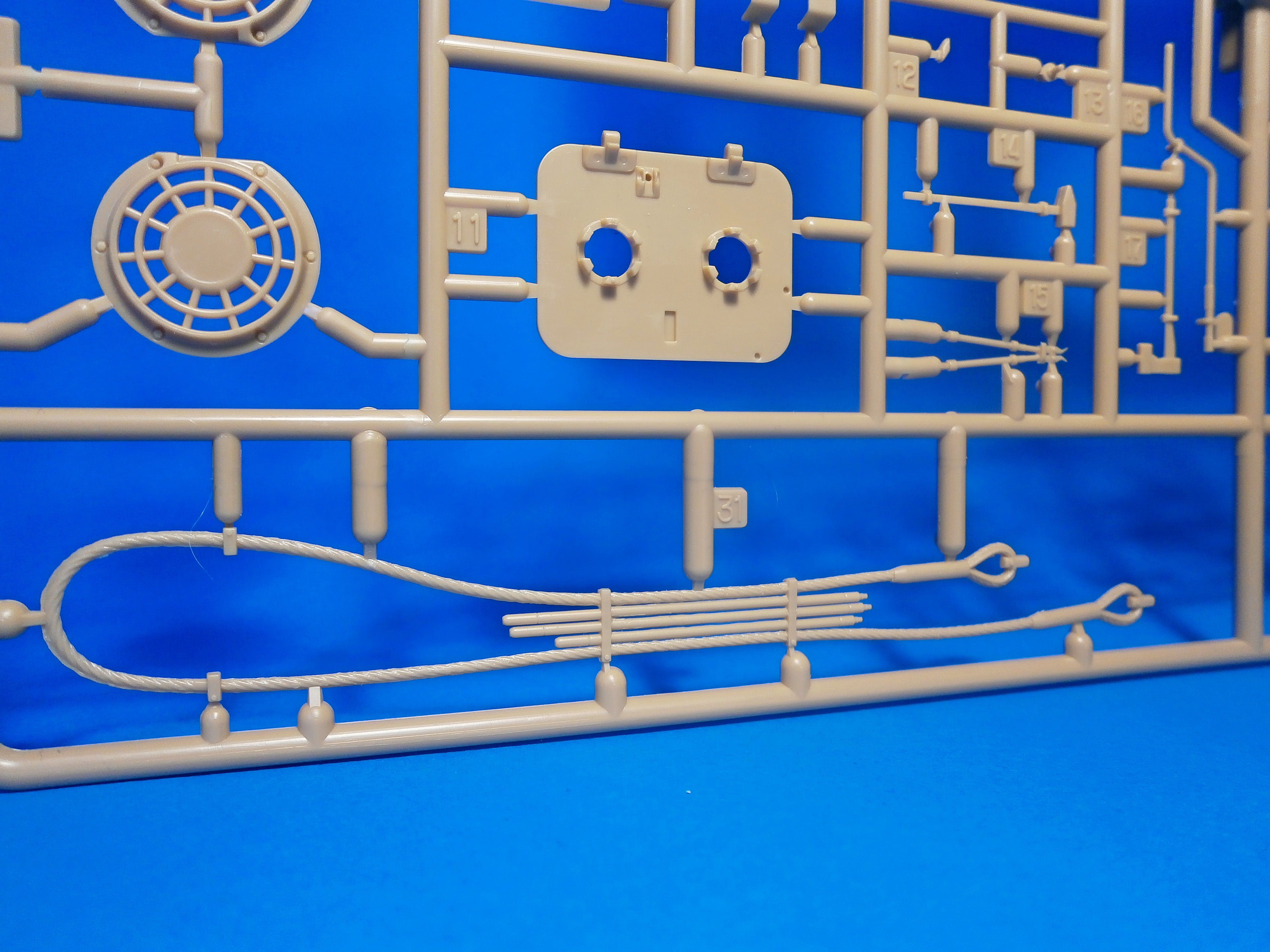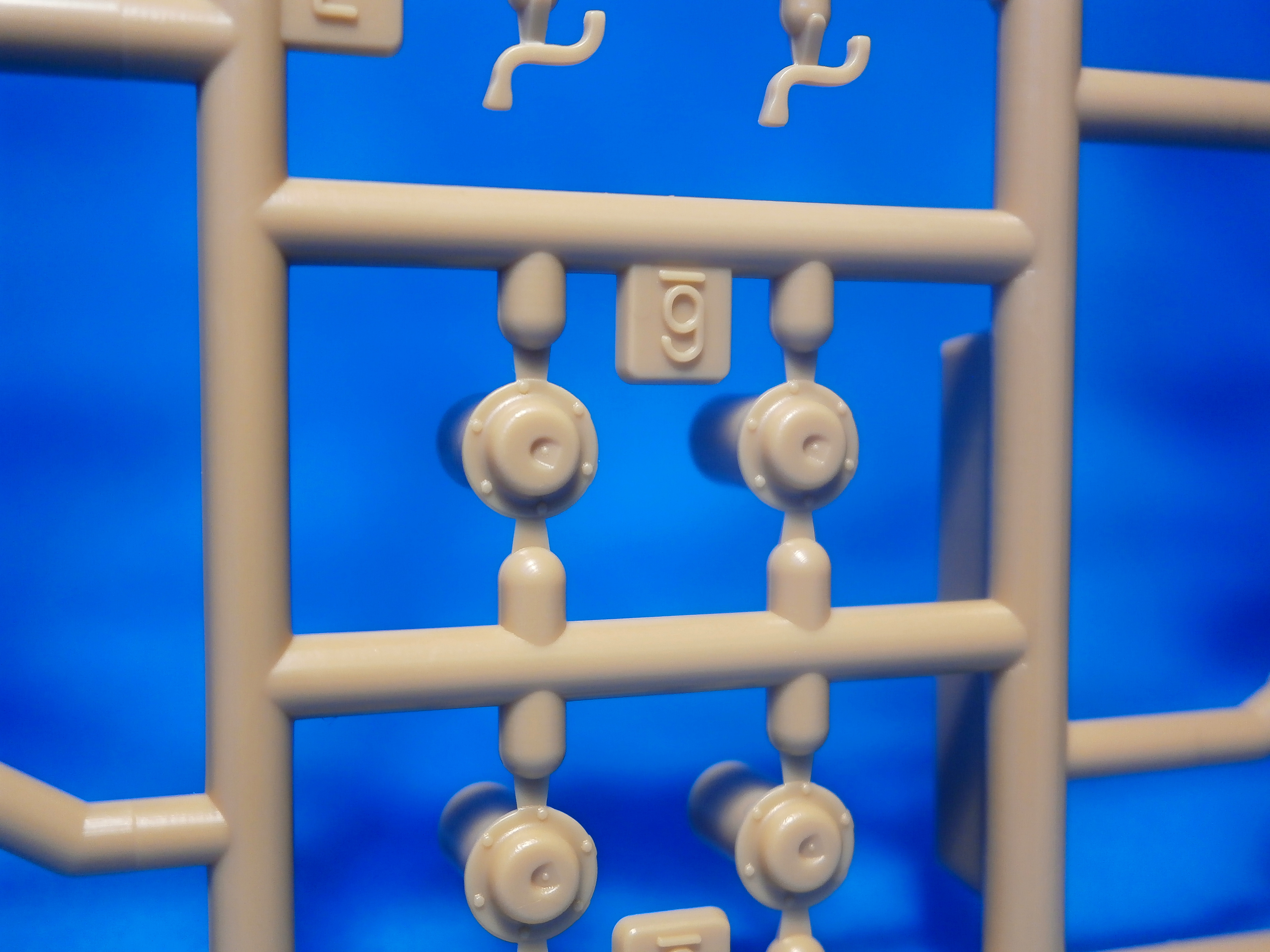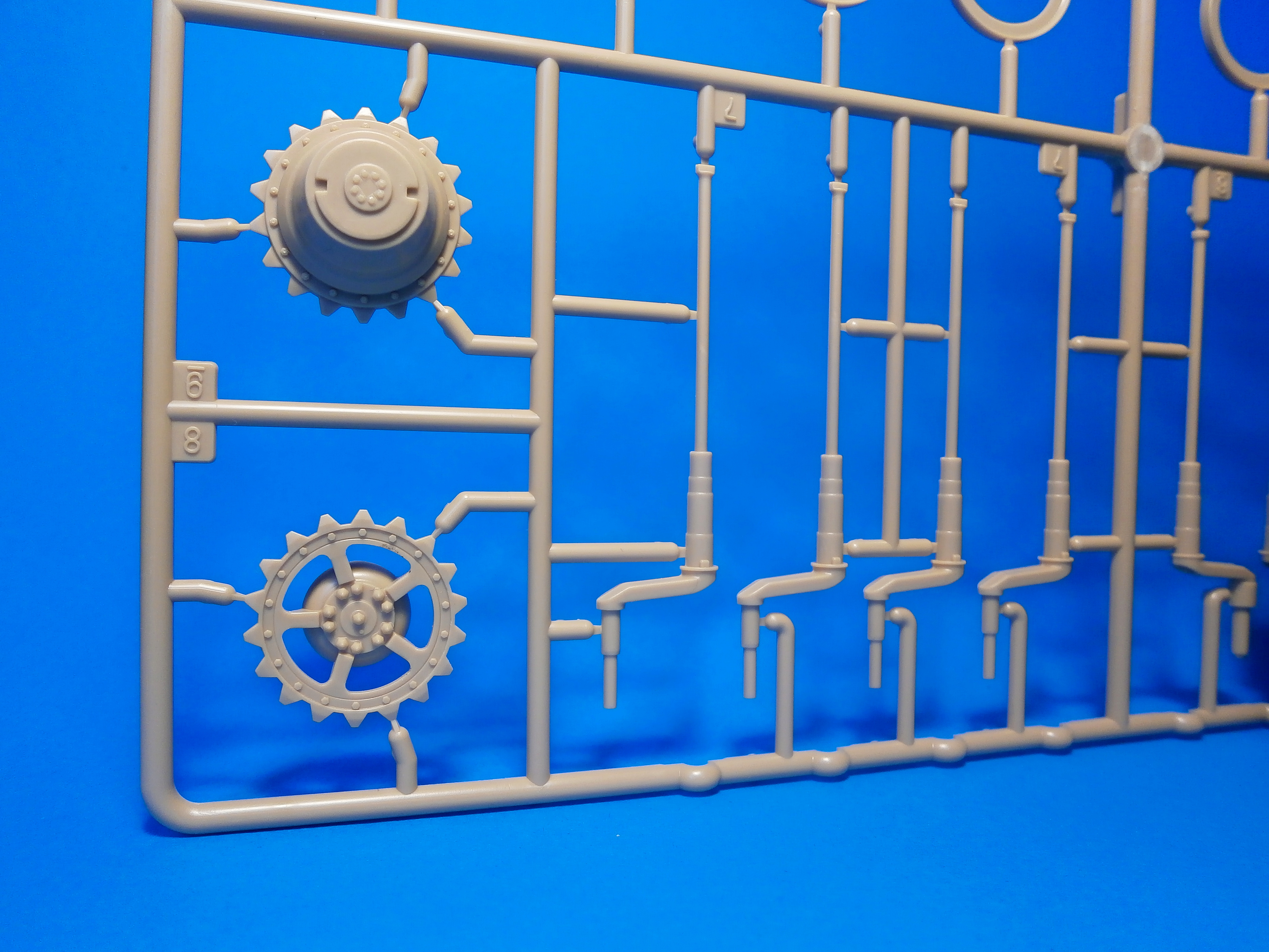 Díly podvozku jsou moc hezké, zde však klame tělem krabice, která na boxartu ukazuje hnací kolo s jiným počtem zubů, než je v krabici. Pásy jsou článkové a krabice obsahuje transportní variantu, která však byla podle fotek k vidění i na tancích v boji.
