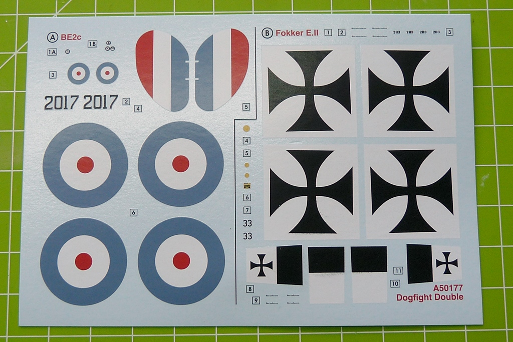 Ty jsou poměrně zjednodušené, a obsahují některé chyby. Co se týká základní kamufláže je vše v pořádku. Oba letouny byly v "přírodní" barvě materiálů, oba tedy v barvě plátna. Taktéž kovové části byly u obou letounů ponechány v přírodním kovovém odstínu. Pouze u Fokkeru E.II byly ještě "rozbity" hádky, což již návod nezmiňuje.