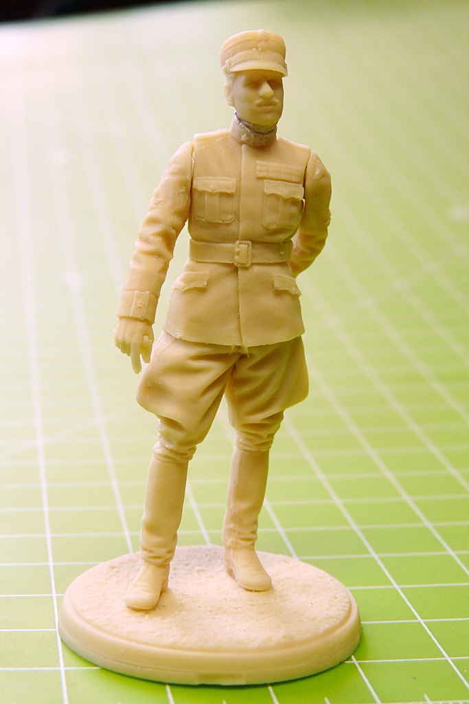 Figurka se skládá ze čtyř odlitků pilota a kulatého podstavce. Odlitky jsou bezchybné, zcela prosty bublinek a velkých přesahů, na drobné začištění před sestavením nám bude stačit zaškrábnutí skalpelem a následné přeleštění smirkovým papírem.