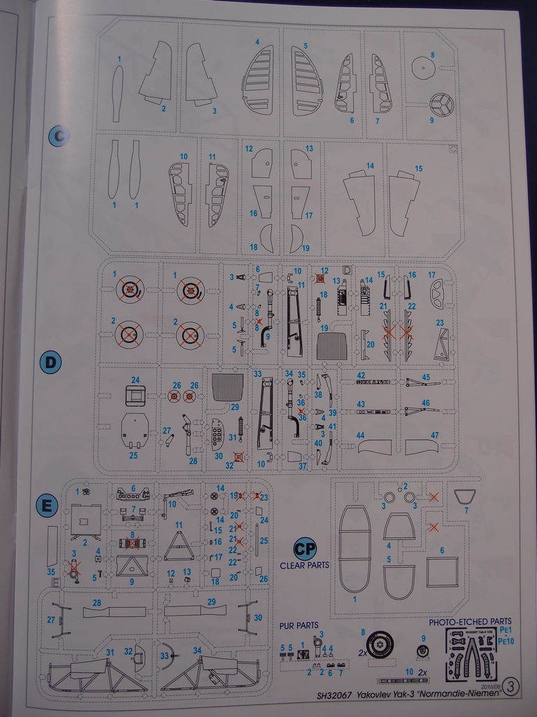 Rámeček CP s čirými díly obsahuje pouze kabinu v zavřené a otevřené poloze, zasklení palivoměrů a zadní pancéřovou desku. Čiré díly jsou vylisovány čistě, kabinka je dostatečně tenká a nemá čočkovitý efekt.
