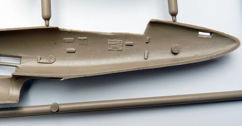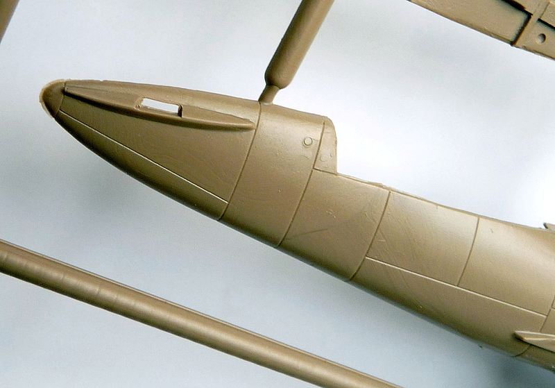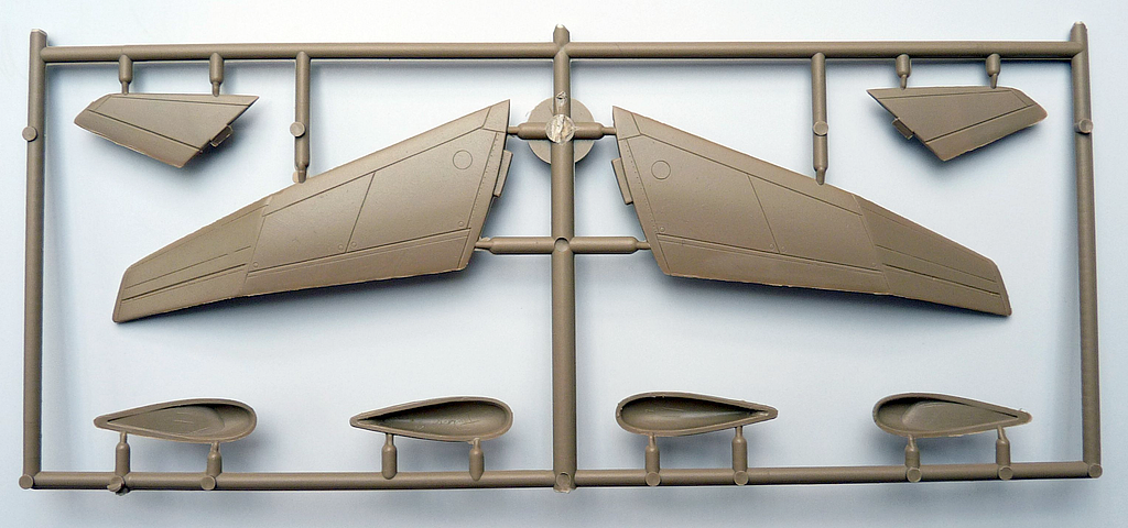 Na hlavních dílech se občas najde nějaký otřep, nebo škrábanec, ale není to nic, na co by nestačilo přestříknout surfem a lehce přebrousit. Paneláž je negativní, jednotlivé linky jsou rovné a ostré. Akorát v místě ohybu vnějších částí křídel se rytí ztrácí a bude potřeba opravit. Nicméně já linky protáhnu rydlem všechny, tak jak to mám ve zvyku u všech modelů.