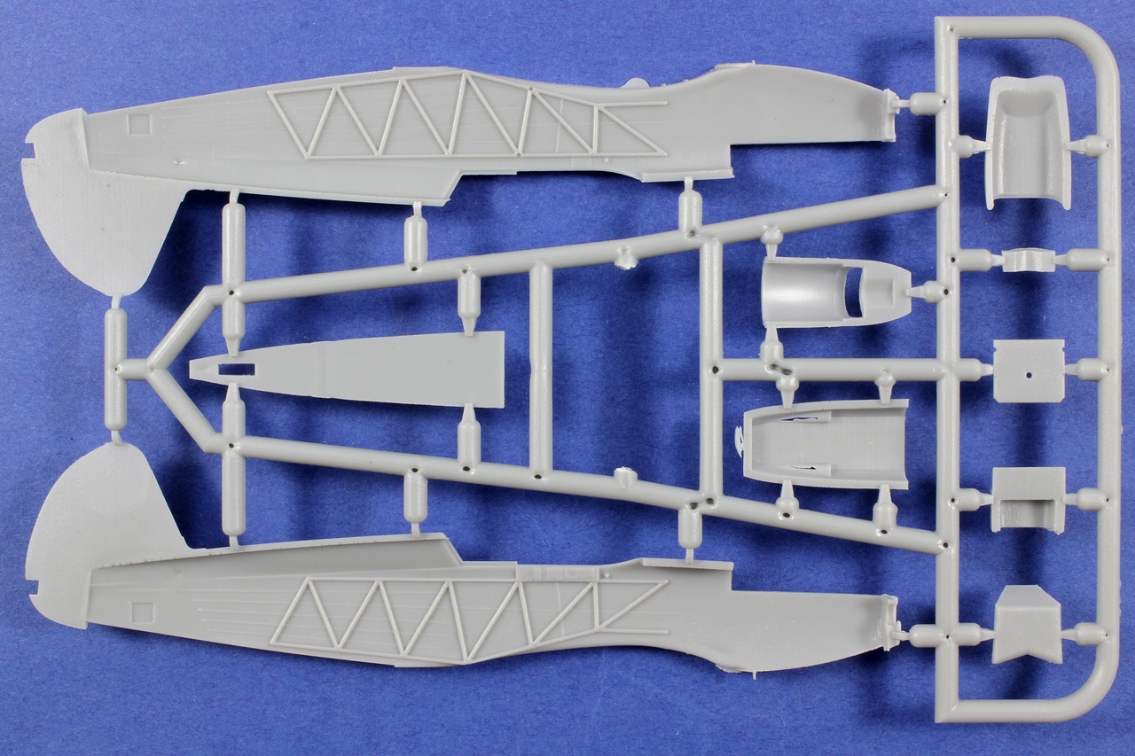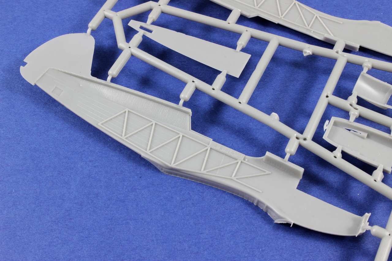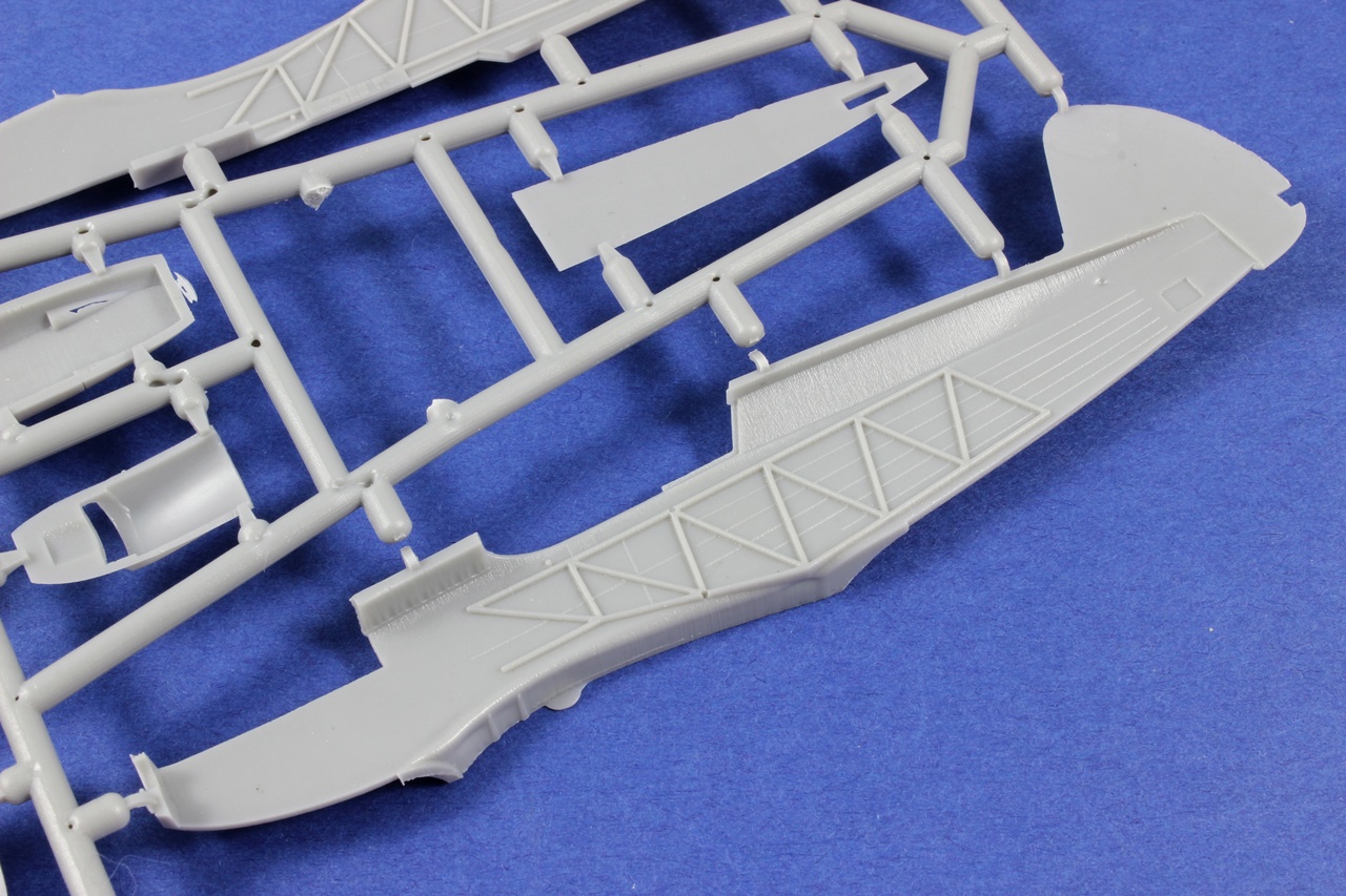 Povrch na dílech druhého rámečku je podobný jako předešlý. Boky trupu v místě pilotní kabiny jsou onýtované. Řady jsou pěkné a rovné. Levá půlka trupu má v přechodu křídlo-trup propadlinu. Na vnitřní straně trupu je pěkně znázorněn trubkový rám. Na některých dílech není stejná hloubka a šířka rytí. Horní kryt motoru bude třeba upravit, aby nebylo vidět do motorového prostoru.