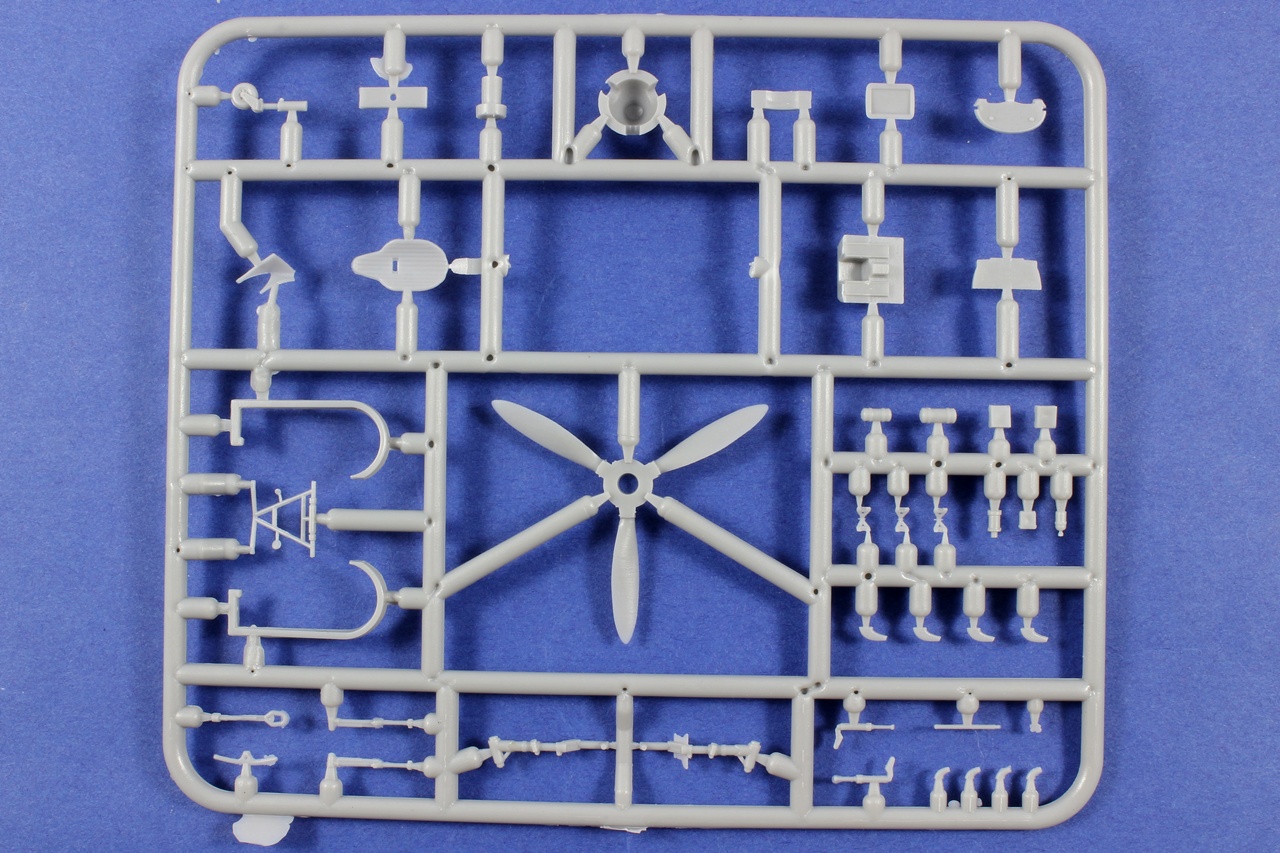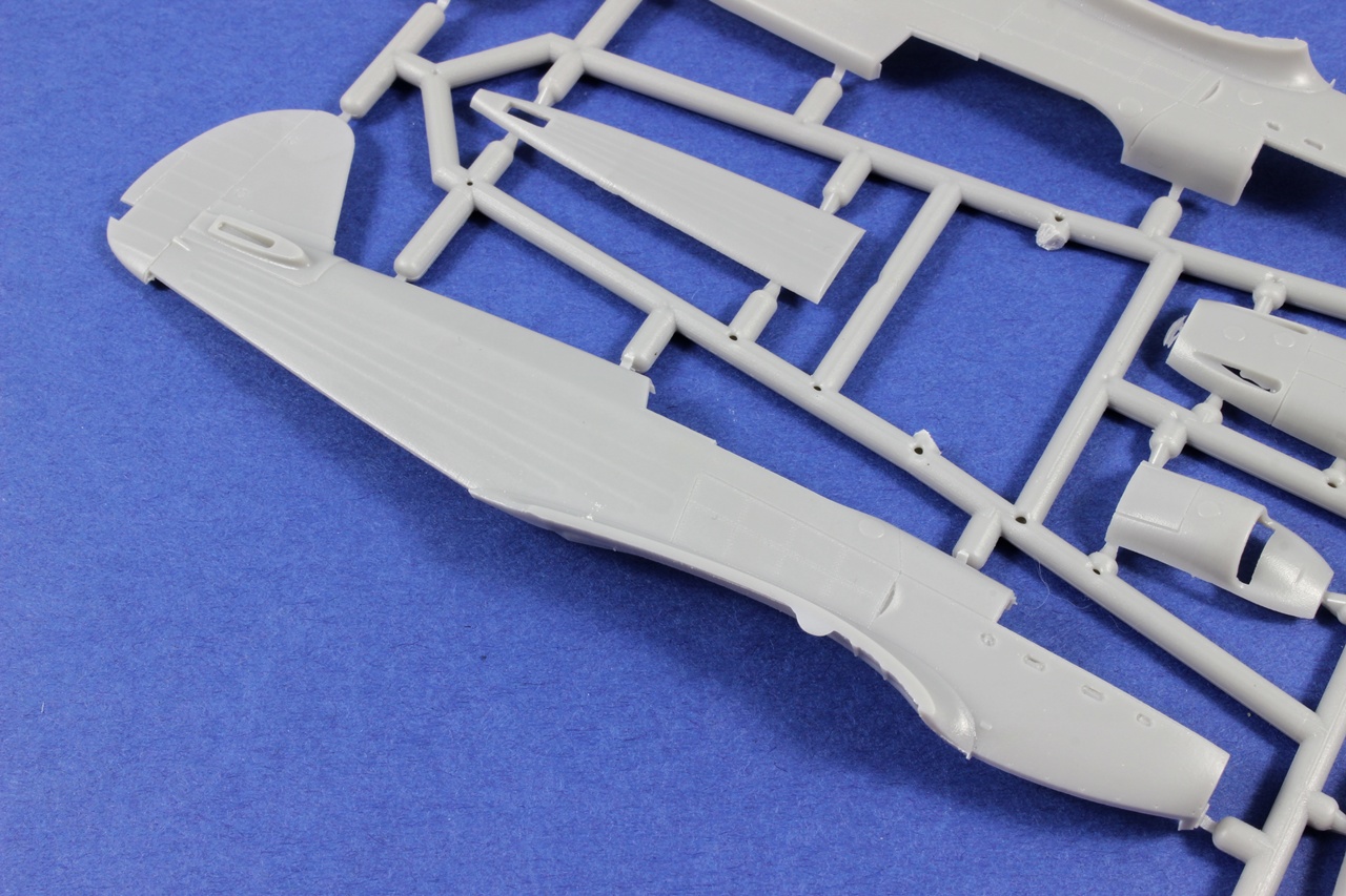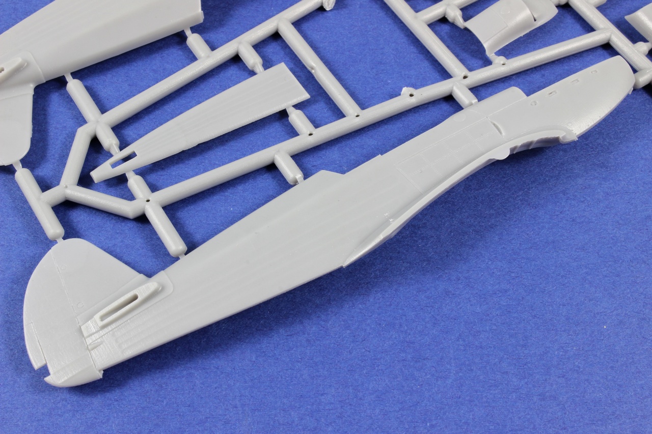 Povrch na dílech druhého rámečku je podobný jako předešlý. Boky trupu v místě pilotní kabiny jsou onýtované. Řady jsou pěkné a rovné. Levá půlka trupu má v přechodu křídlo-trup propadlinu. Na vnitřní straně trupu je pěkně znázorněn trubkový rám. Na některých dílech není stejná hloubka a šířka rytí. Horní kryt motoru bude třeba upravit, aby nebylo vidět do motorového prostoru.