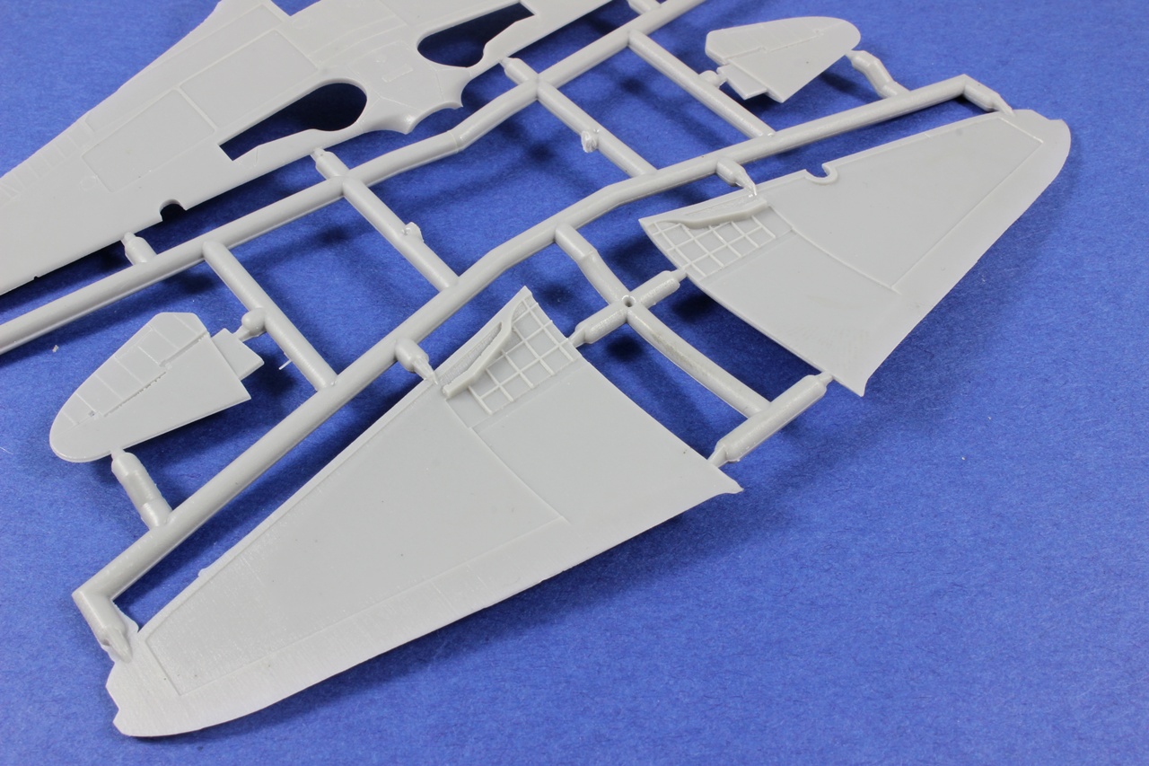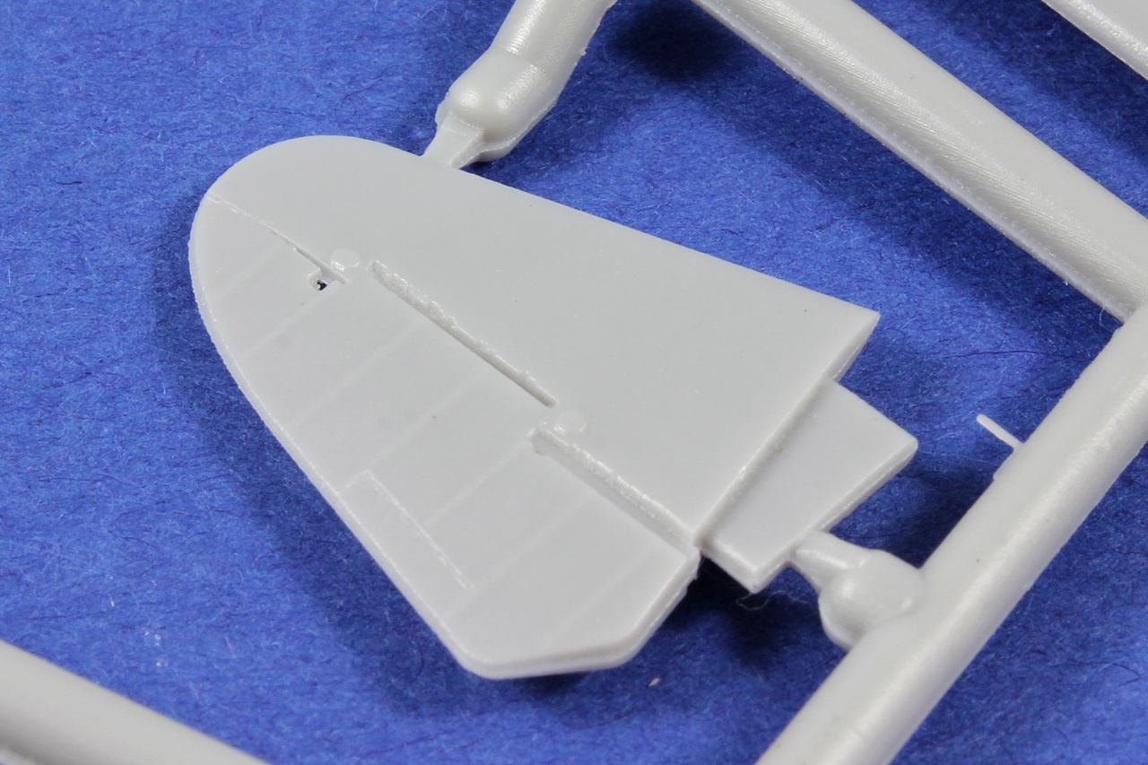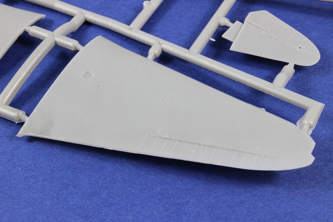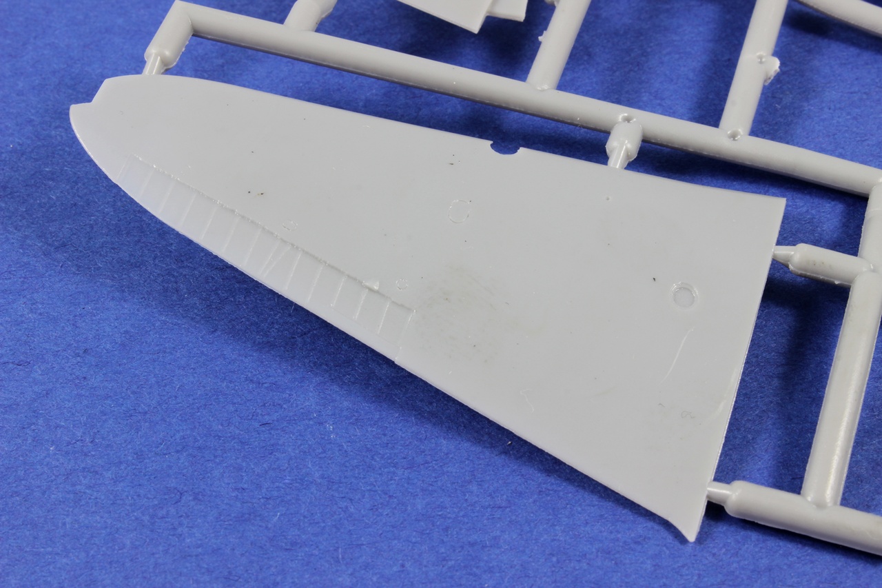 Díly křídel mají místy škrábance, které bude potřeba přeleštit. Mezi pevnou a pohyblivou částí VOP jsou "zuby". Ty bude potřeba vytmelit a přebrousit. Jsou na obou dílech z obou stran. Na dílech je i nepatrně posunutá dělící rovina.