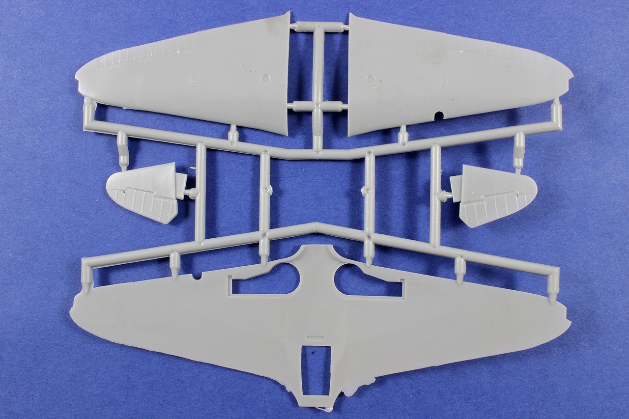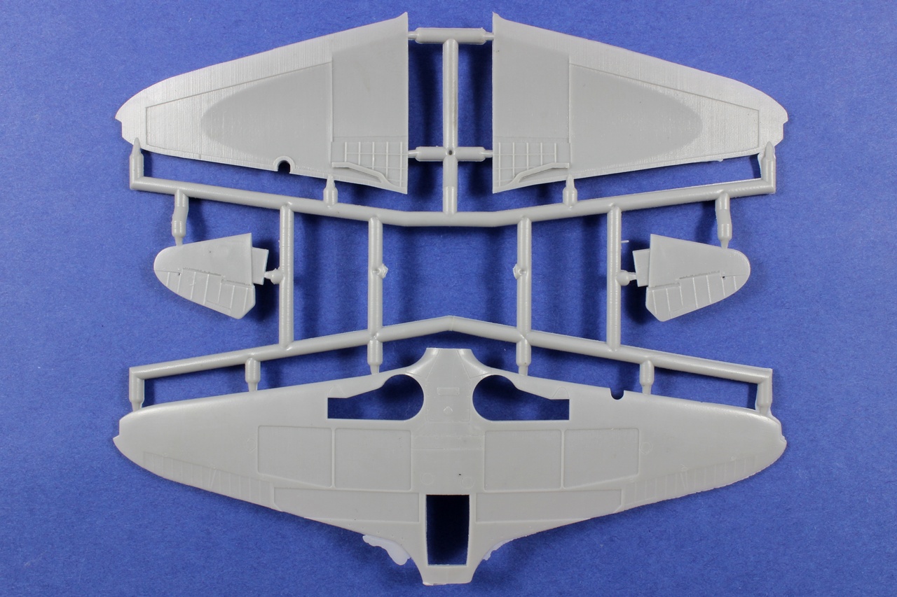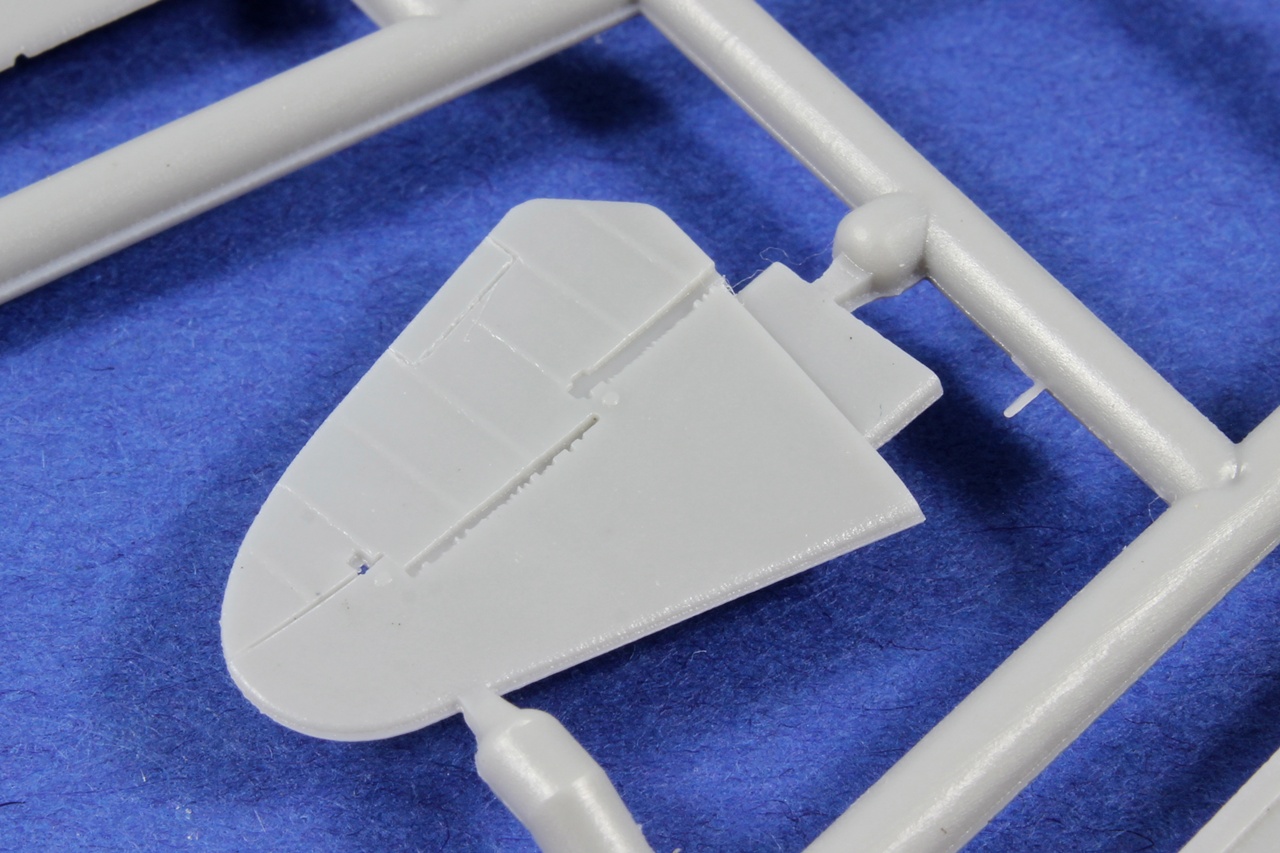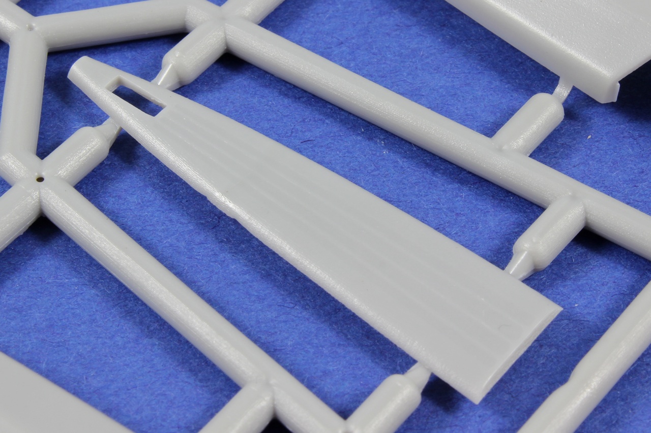Díly křídel mají místy škrábance, které bude potřeba přeleštit. Mezi pevnou a pohyblivou částí VOP jsou "zuby". Ty bude potřeba vytmelit a přebrousit. Jsou na obou dílech z obou stran. Na dílech je i nepatrně posunutá dělící rovina.