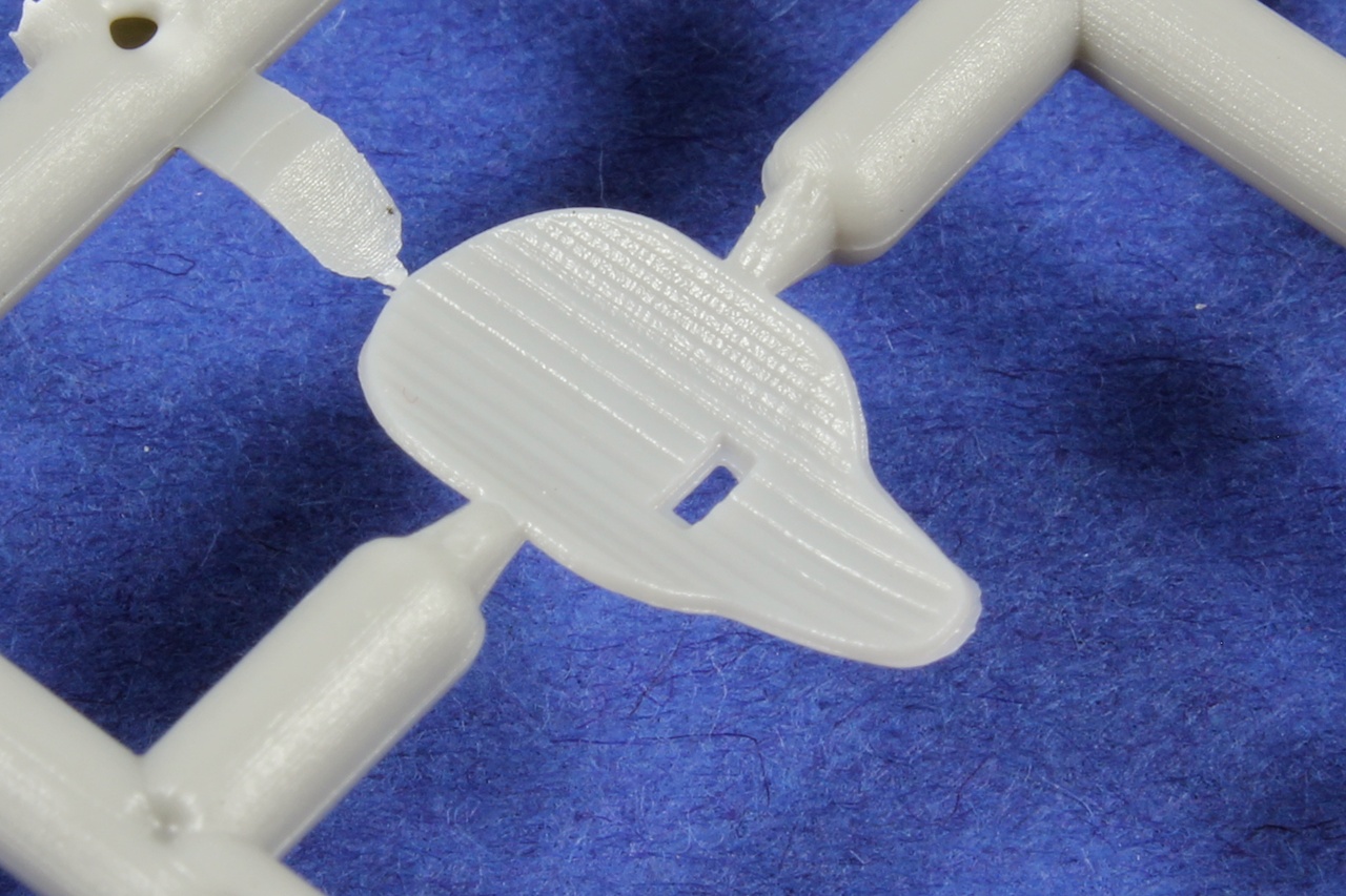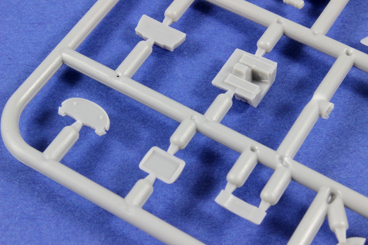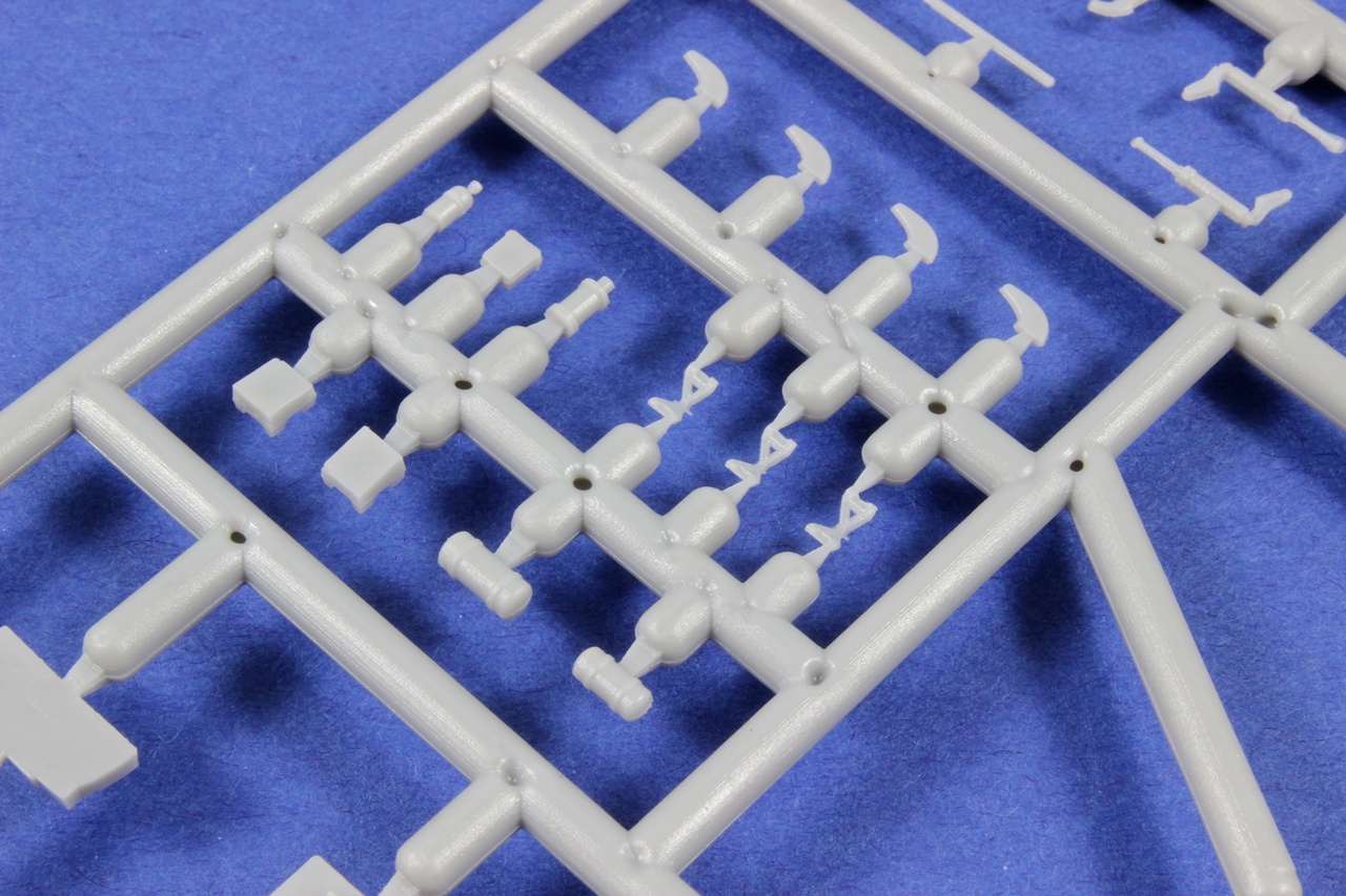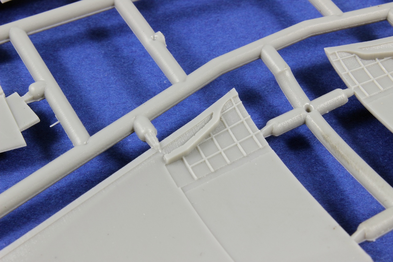 Všechny díly mají znatelné otřepy. Místy jsou propadliny a na některých dílech je posunutá dělící rovina formy. Jeden čirý díl byl oddělený od rámečku, naštěstí byl stále v sáčku. Rámečky neobsahují čísla dílů, jsou však uvedeny v návodu na první straně.