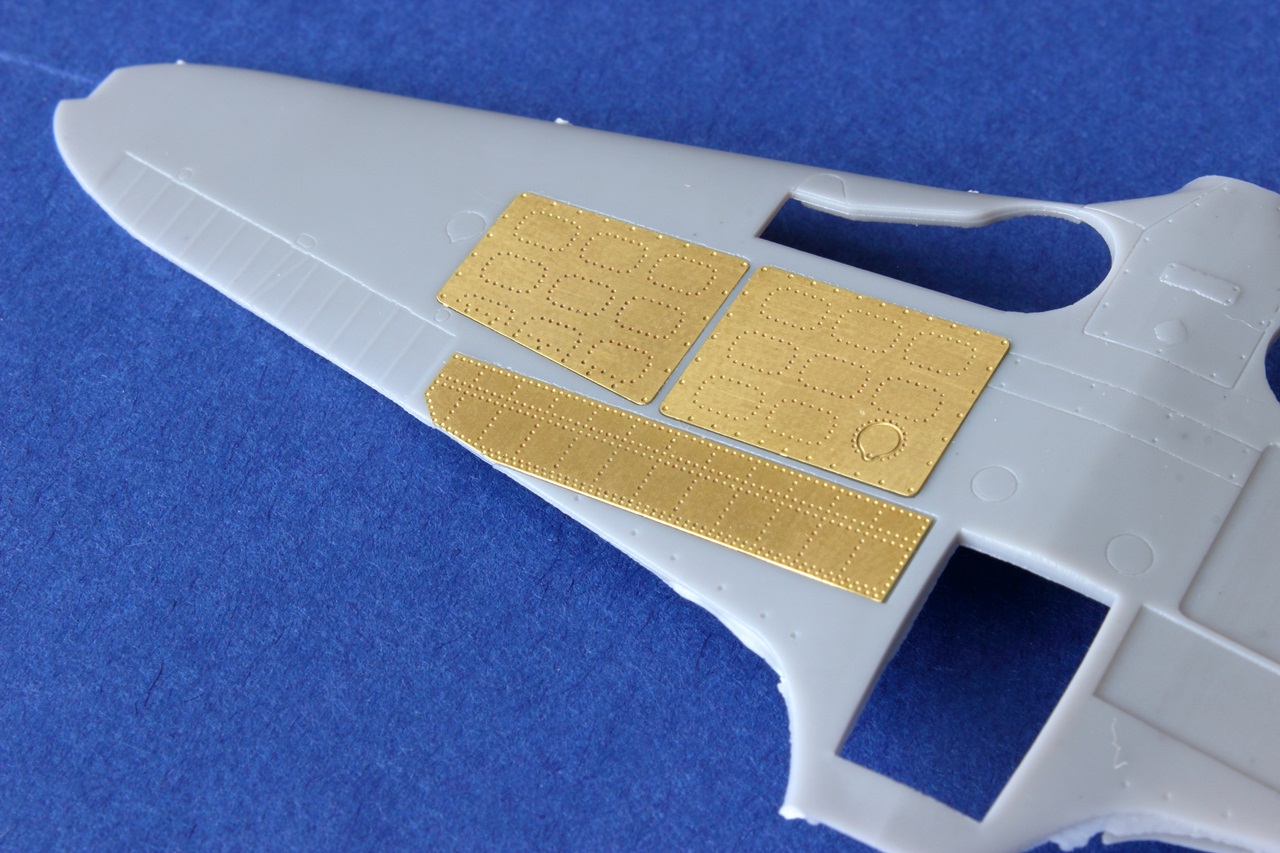 Trup i křídla k sobě pasují celkem dobře. Leptané díly na spodní straně křídel sedí do otvoru velmi přesně na desetiny milimetru.