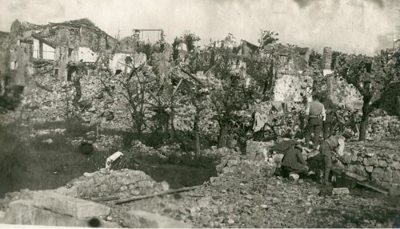 Britská pěchota po vyčerpávajících bojích obsazuje Lagnicourt, ležící 9 kilometrů severovýchodně od Bapaume.