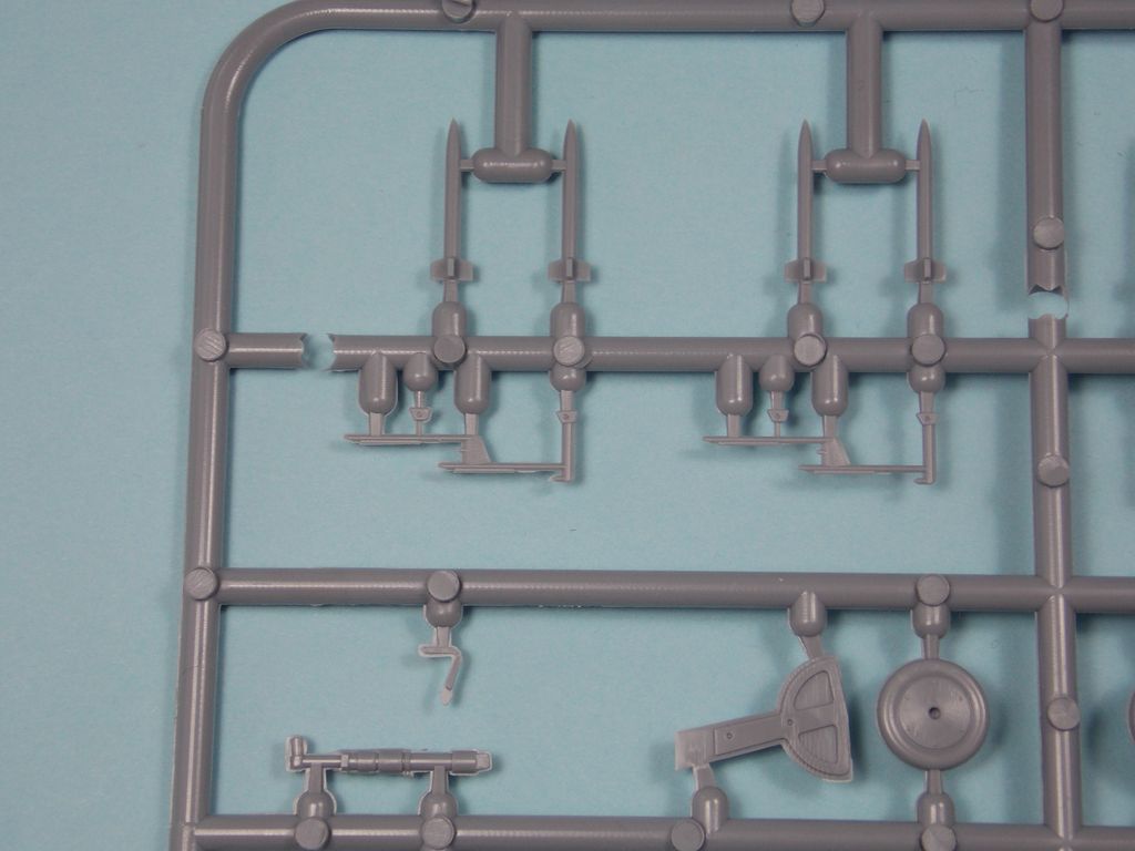 Rytí na všech dílech je plytké, rovné. Bude třeba pomocí rydla rytí prohloubit. U plastové přístrojové desky nalezneme drobnou blanku. Na křídlech potřebují začistit vyvažovací plošky, což by mělo být modelářskou rutinou. Co by potěšilo je štíhlejší odtoková i náběžná hrana křídla.