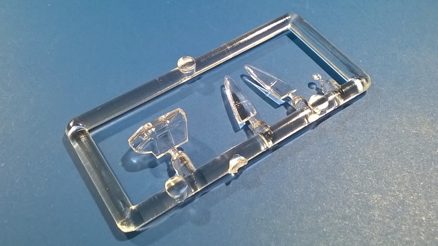 Průhledné díly jsou dobře čiré, jen poněkud silnější, což však v měřítku 1/144 jinak vylisovat nelze.