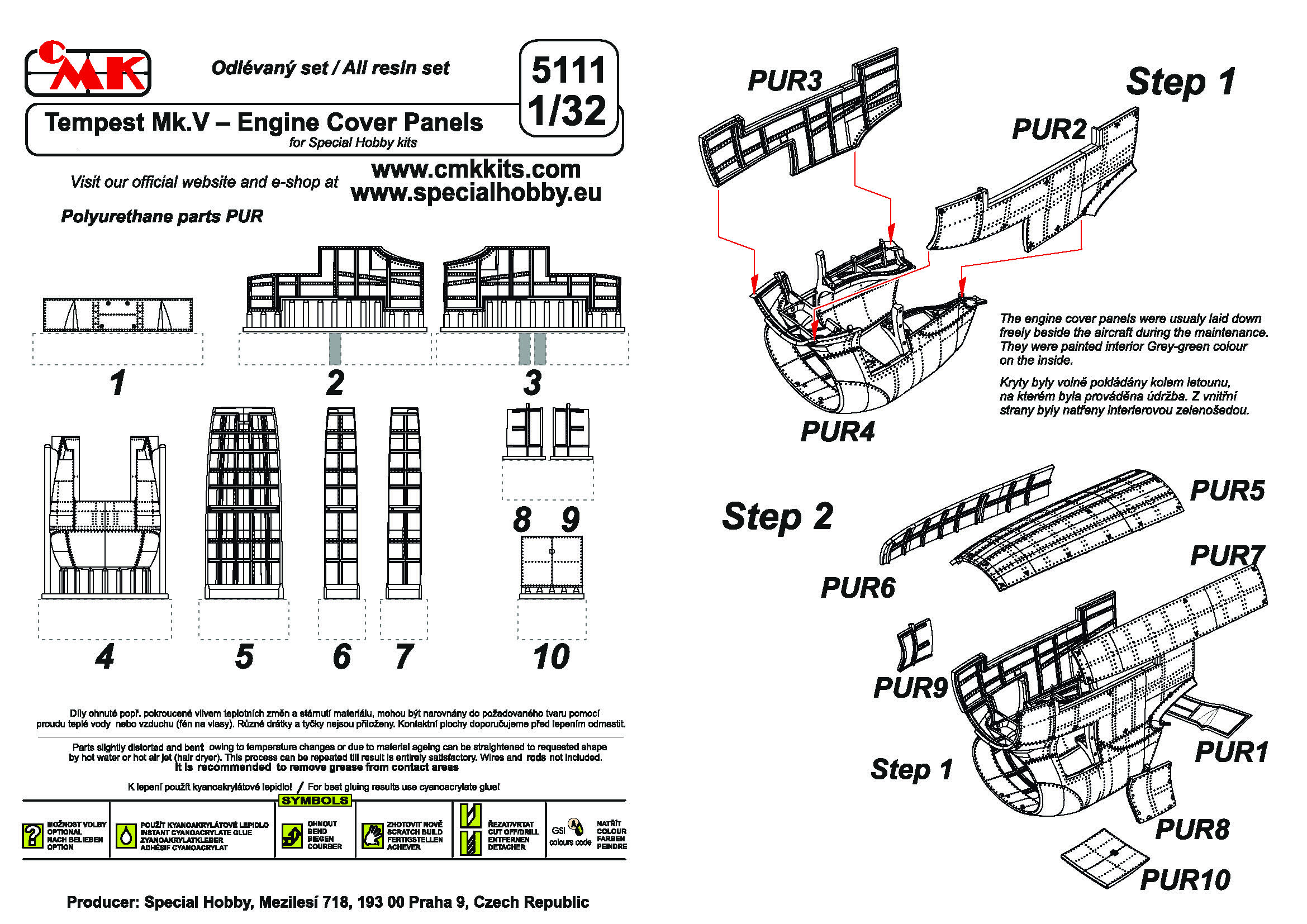 1/32 Engine Cover Panels for – Tempest Mk.V (Special Hobby) – CMK