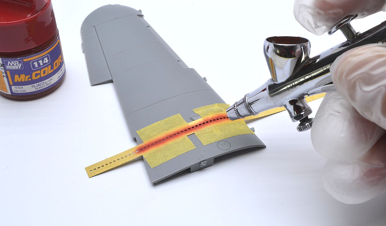 Vyzkoušel jsem šablony v praxi, na křídle Bf-109 G6 v měřítku 1/32. Stačí si je jen řádně uchytit na modelu, v mém případě páskami firmy Tamiya, a jednoduše nastříkat – celá práce mi trvala méně než 5 min. Výsledek je velice přesvědčivý, pro mne osobně je toto řešení rychlejší a praktičtější, než používání obtisků.