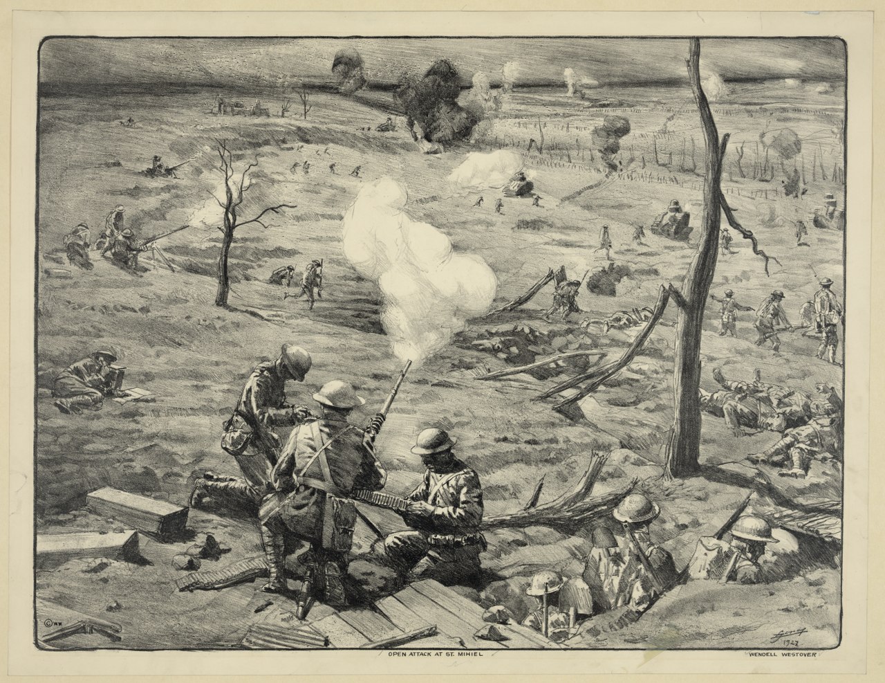 Americká první armáda pod velením generála Johna J. Pershinga a francouzský II. koloniální sbor ve třech vlnách provádí frontální útok na německé pozice v St. Mihiel. Ten tvořil výběžek do spojenecké fronty a znesnadňoval přímou komunikaci mezi Nancy a Verdunem. Útoku předcházela důkladná příprava ze strany německého velení, které v oblasti mezi vesnicemi Vigneulles, Thiaucourt a Hannonville-sous-les-Cotes protkalo zemi systémem důkladných zákopů, kulometných hnízd a drátěných zátarasů. V neprospěch útočících jednotek působilo i počasí, kdy po pěti dnech intenzivního deště byl terén zcela neprůchodný pro tanky a těžce průchodný pro pěchotu. Němci se navíc dověděli i čas a délku trvání dělostřelecké přípravy (byla zveřejněna v jednom švýcarském deníku), nicméně posádka byla díky spojeneckým úspěchům na západní frontě demotivována a postrádala jak morálku mužstva tak i efektivní velení aby využila výhod které měla a zahájila protiútok proti spojencům. Spojenci v den útoku zmobilizovali 1 481 letadel, aby zajistily vzdušnou převahu a vzdušnou podporu útočícím vojskům. Součástí bylo i 9 bombardovacích eskader RAF. Hlavní útok byl veden z jihu dvěma americkými sbory, druhý byl veden od západu od od Mouilly a útok do středu německých pozic který měl vázat německé síly na místě aby nemohly podpořit obranu na křídlech byl veden francouzským II koloniálním sborem. Při útoku se vyznamenal plukovník George Smith Patton (budoucí čtyřhvězdičkový generál armády Spojených států amerických) který velel brigádě amerických tanků a i přes utrpěné zranění během útoku dokázal zorganizovat útok svých tanků a podporou pěchoty a prorazit německé obranné linie. Patton byl ze toto dekorován Distinguished Service Cross za mimořádné hrdinství v boji.