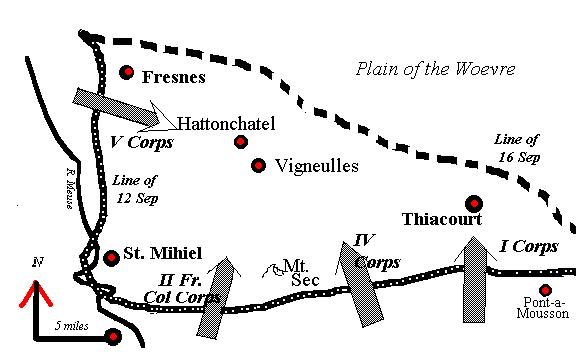 Pokračují boje o St. Mihiel. Americká 1.divize postupující od východu do města se potkává s 26.divizí útočící od západu a společně postupují celou oblastí St. Mihiel a k večeru obsazují všechny německé cíle. Američané v bitvě přicházejí o 7 000 mužů (4 500 mrtvých a 2 500 zraněných) Němci mají ztráty 22 500 mužů (2 000 mrtvých, 5 500 zraněných a 15 000 zajmutých). Američané získávají velké množství munice a zbraní včetně 450 děl.