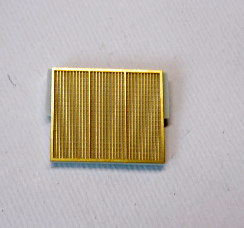 Při sestavování křídla jsem nejdříve upravil díl šachet ze stavebnice a pak skompletoval s leptanými díly podvozkové šachty. Šachty jsem barvil barvou XF-4 Yellow Green. Jako další jsem do křídla vlepil a nabarvil takzvaný semafor. Pak už jen stačilo slepit díly křídel k sobě. Na horní část jsem nalepil knipl a tuto část jsem nabarvil a napatinoval. Dále jsem nalepil část náběžné hrany s výstřelnými otvory palubních z zbraní, které jsem prohloubil vrtáčkem.