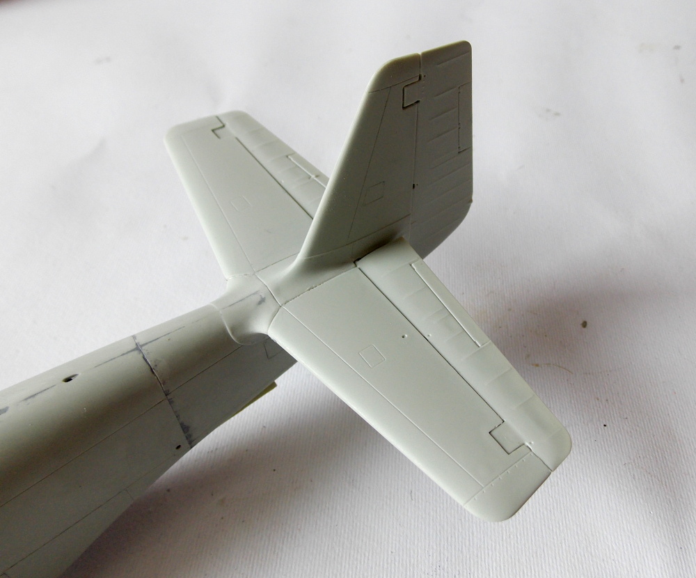 Dále jsem vytmelil propadliny na krytech podvozku a klapkách.