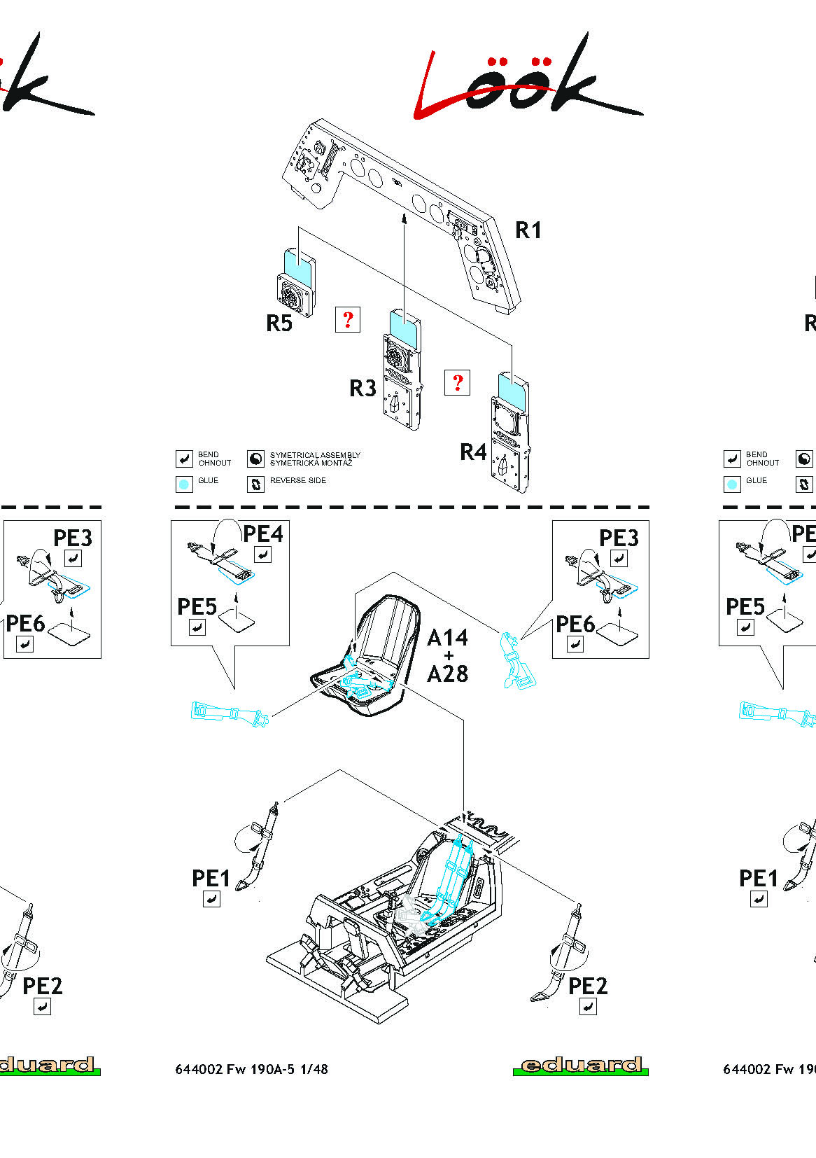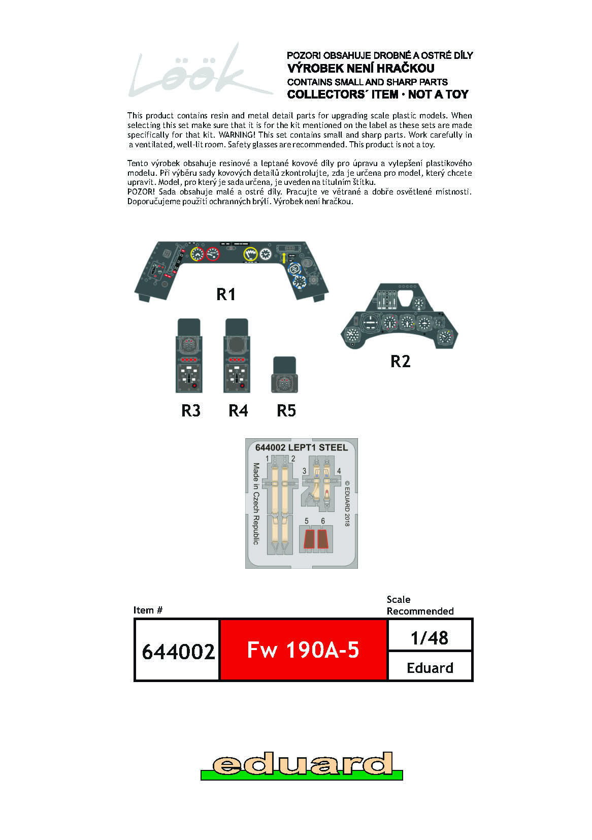 Pred nedávnom spustil Eduard novú radu doplnkov "Look" a bol som zvedavý ako budú vyzerať "face to face". V blistri na spôsob plechov sa nachádza dvojstrannový návod s piatimi brassinovými dielmi + planžietka steel pásov. Zoznam použitých farieb nie je priložený z dôvodu že ho netreba.