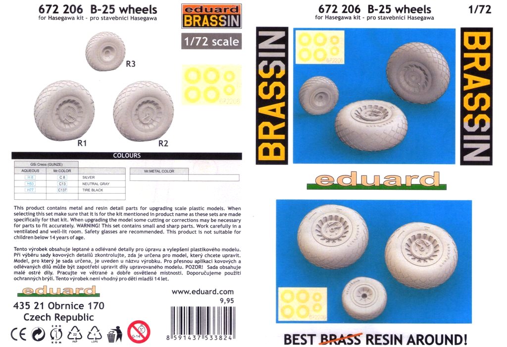 B-25 v měřítku 1/72 od Hasegawy patří bezesporu mezi to nejlepší, co tato firma vydala. Přesto jsou ale místa, která se dají pomoci doplňku vylepšit a nyní si představíme pokus Eduardu o náhradu kol podvozku.