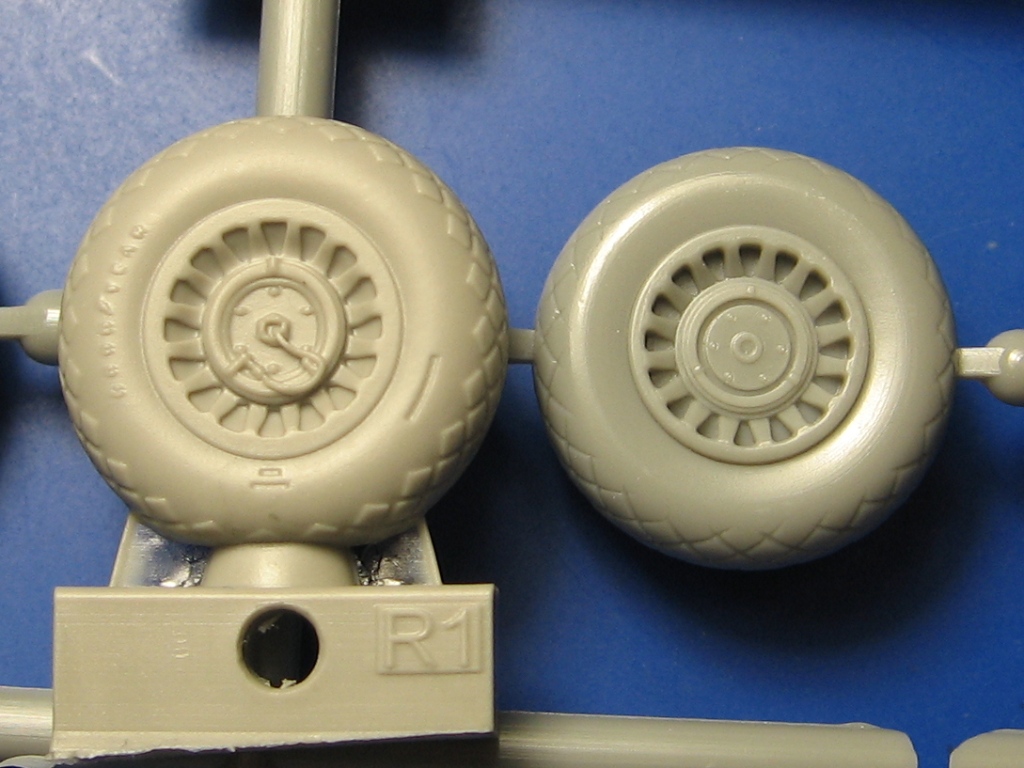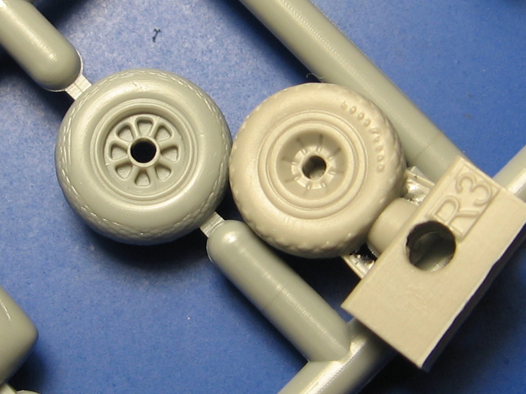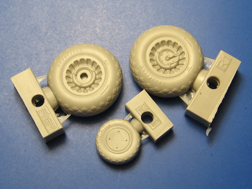 Když odlitky porovnáme s díly ze stavebnice, tak s potěšením zjistíme že nám odpadne začišťováni místa spojů a obnovováni vzorku u hlavních podvozkových nohou a znázornění "zatížení" pneumatik pod váhou letounu.
