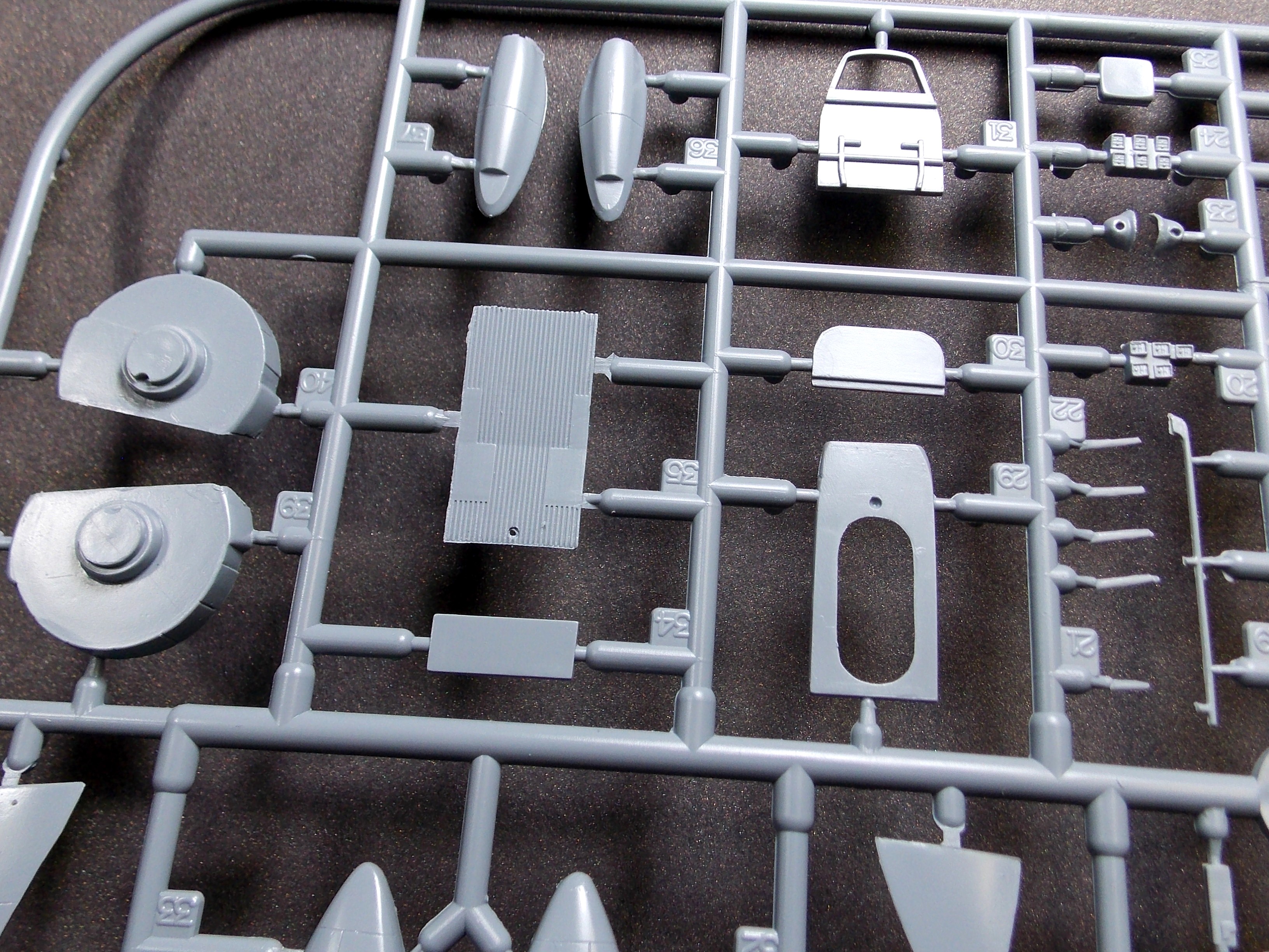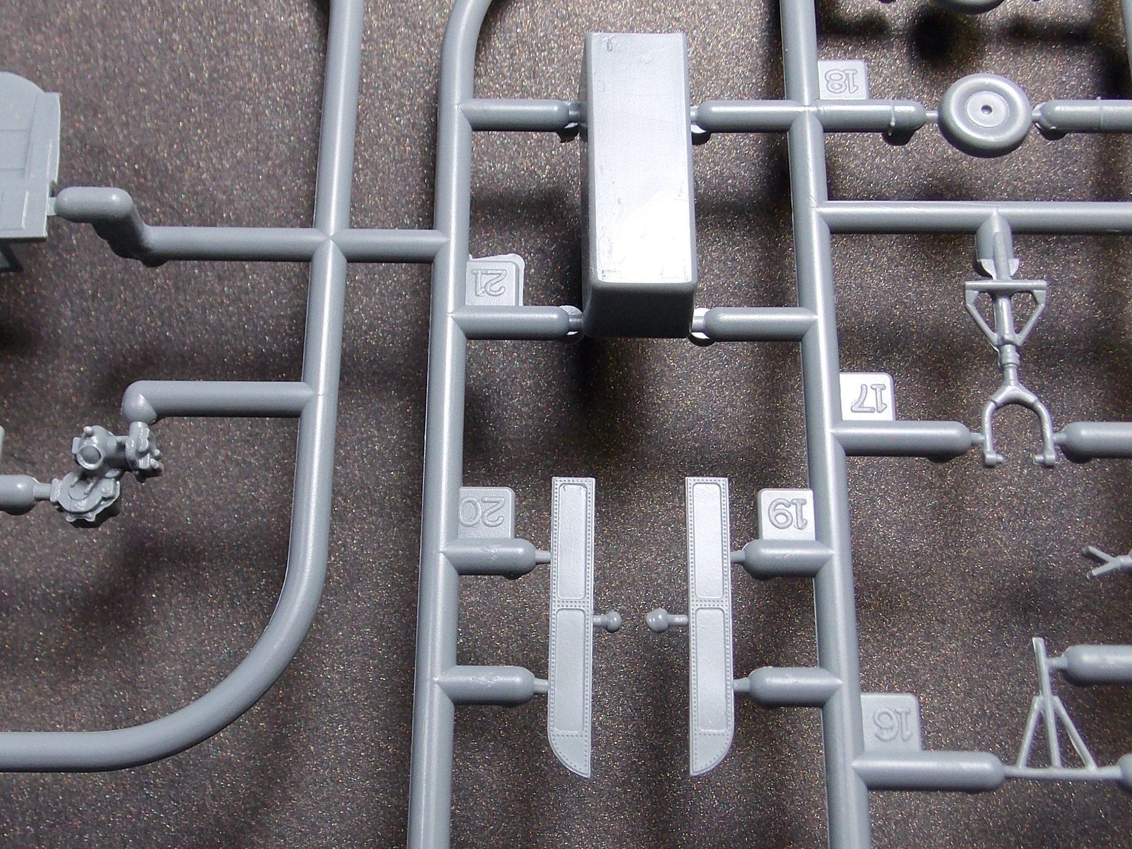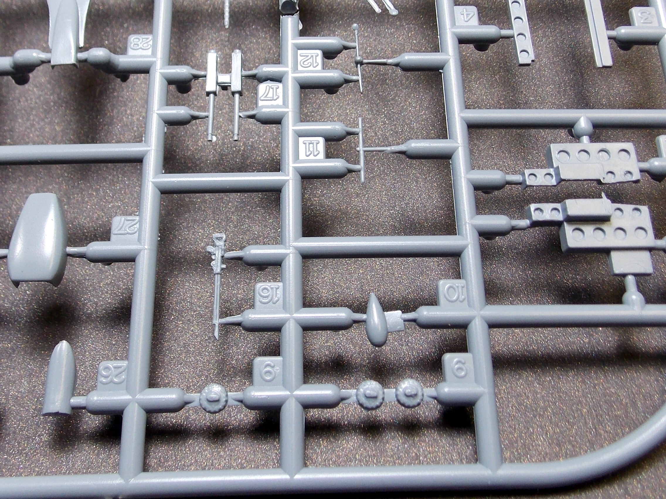 V krabici na nás čaká 5 rámčekov vylisovaných zo stredne šedého plastu dva rámiky z číreho plastu.. Výlisky vyzerajú k svetu , rytie je primerane široké a aj akurát hlboké. Veľmi pekne sú znázornené prelisy na SOP.