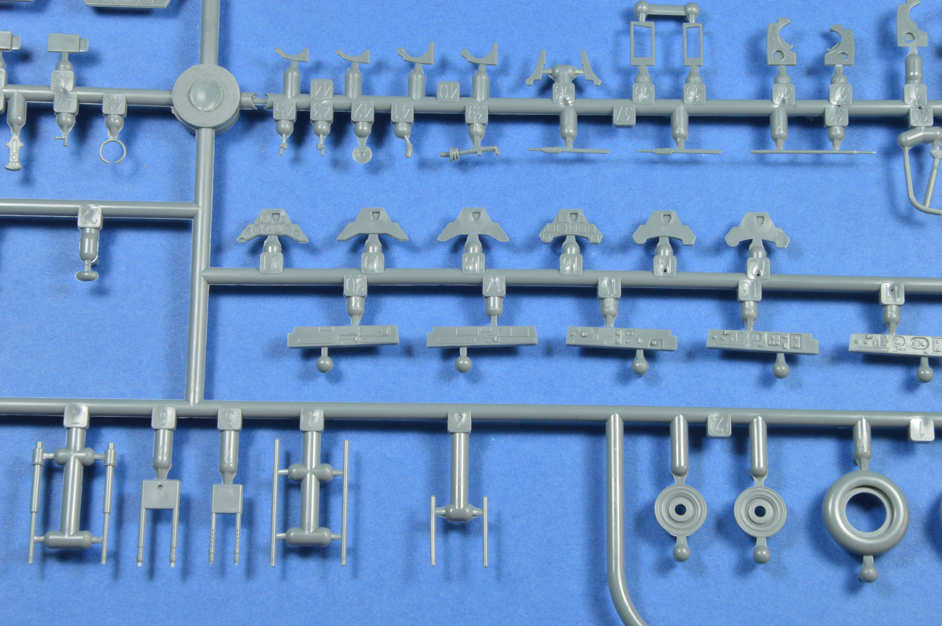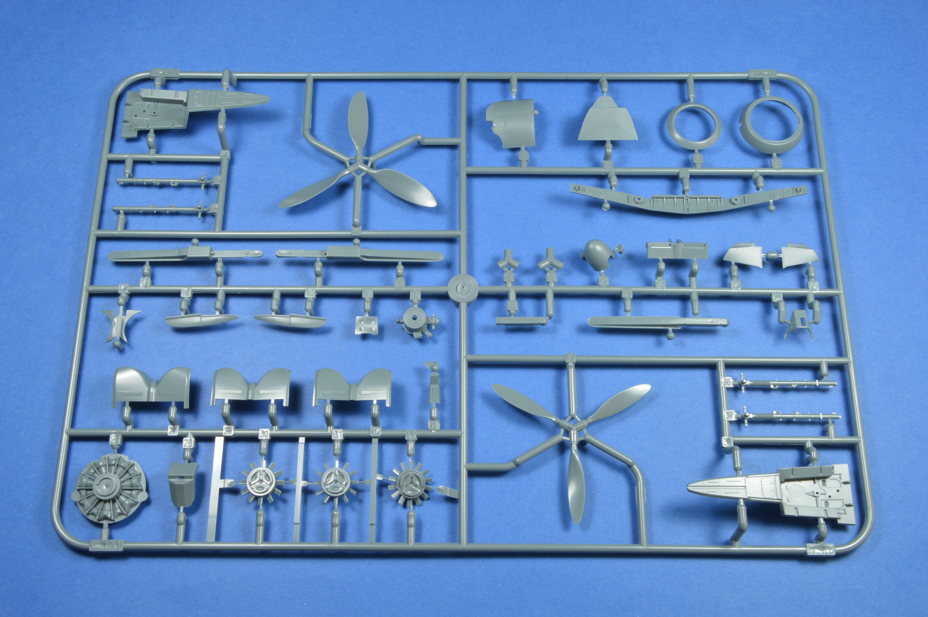 Tak jak jsme zvyklí u Fw-190, tak i u tohoto modelu, jsou všechny rámečky čisté bez nálitků nebo škrábanců a propadliny jsem taky žádné nenašel. Rámeček A obsahuje vanu kokpitu, vrtule, podvozkové nohy, motor, sedačku pilota, dva prstence motorového krytu a závěsníky.