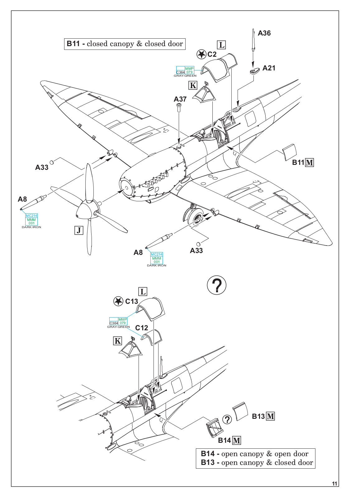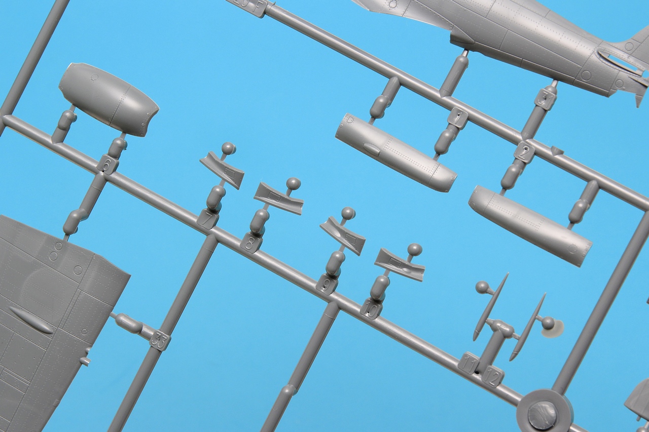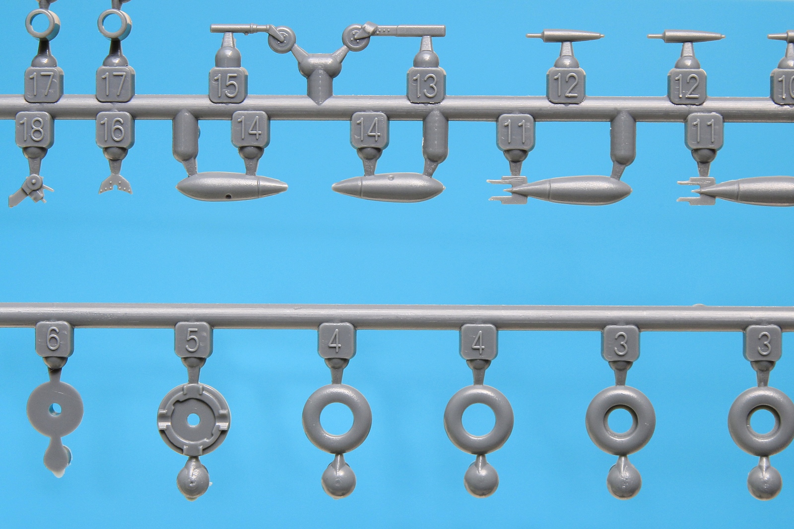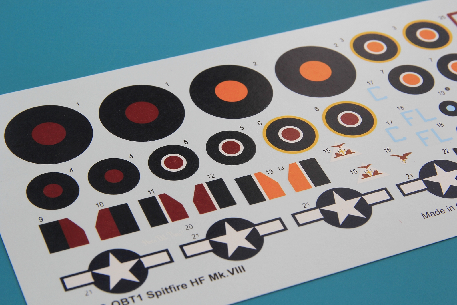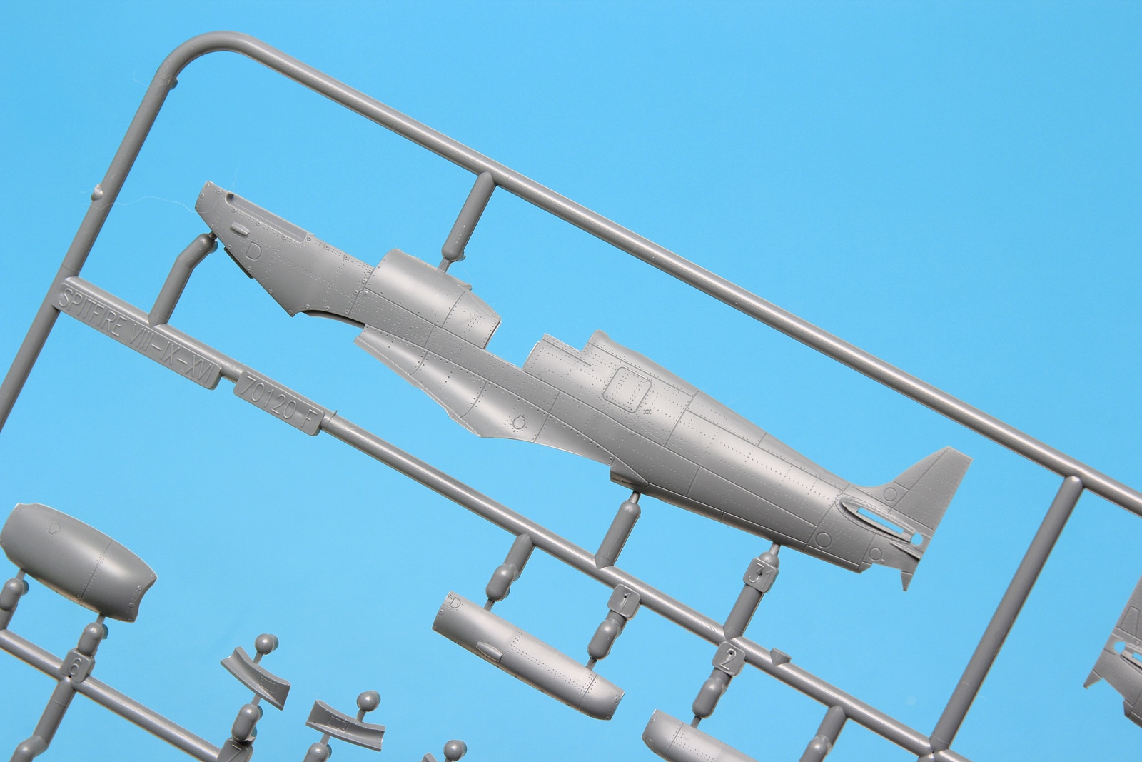 Ať už Mk.VIII, Mk.IX nebo Mk.XVI, tak rámečky s drobnými a čirými díly jsou stejné pro všechny varianty. Stavebnice se liší pouze použitými rámečky s trupem a křídly. Co se týče kvality výlisků, tak "osmička" je na tom nejhůře. Jak již několikrát zaznělo, tak nýtování se místy na křídlech ztrácí. Alespoň rytí je všude stejně kvalitní.