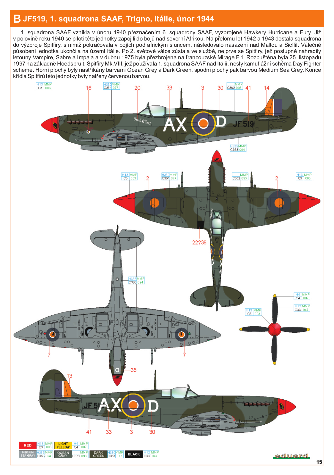 - Spitfire HF Mk.VIII, JF519, 1. squadrona SAAF, Trigno, Itálie, únor 1944