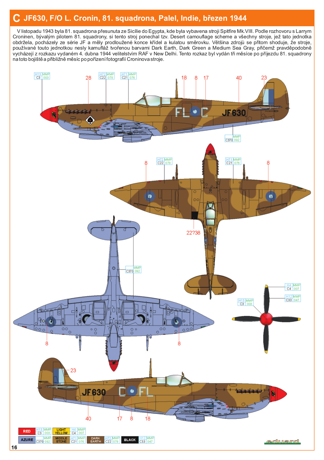 - Spitfire HF Mk.VIII,JF630, F/O L. Cronin, 81. squadrona, Palel, Indie, březen 1944