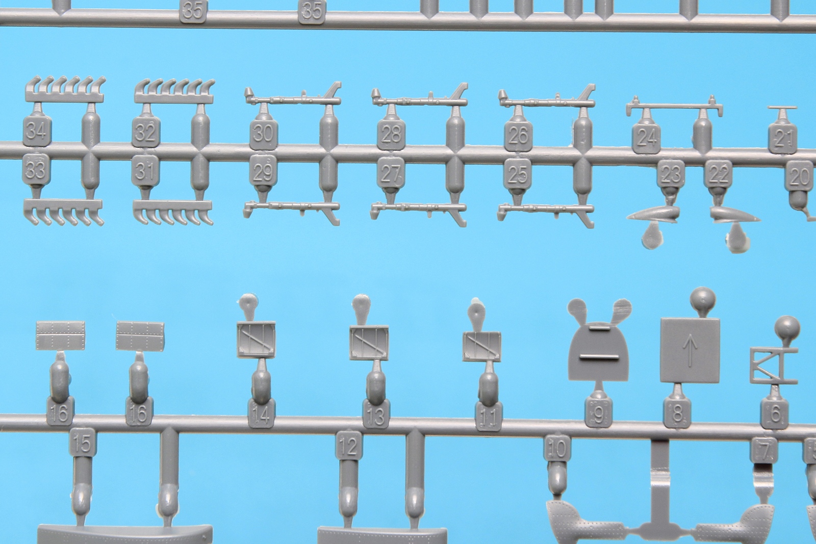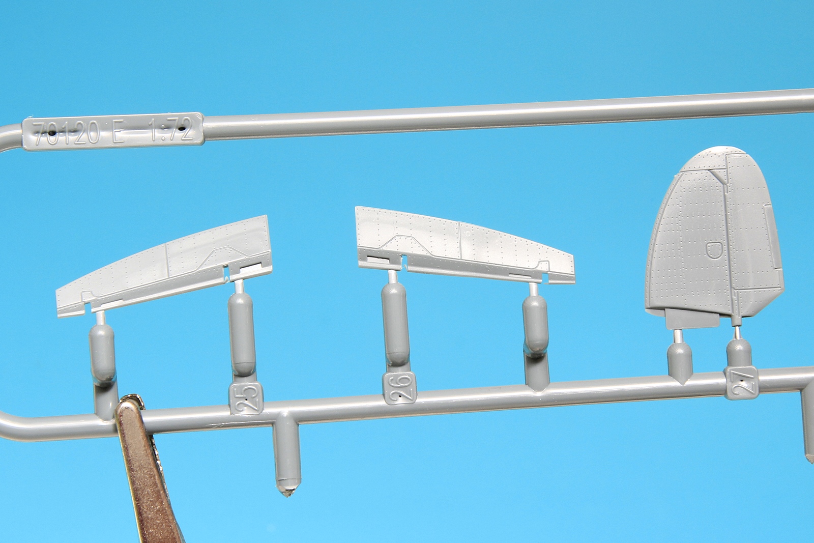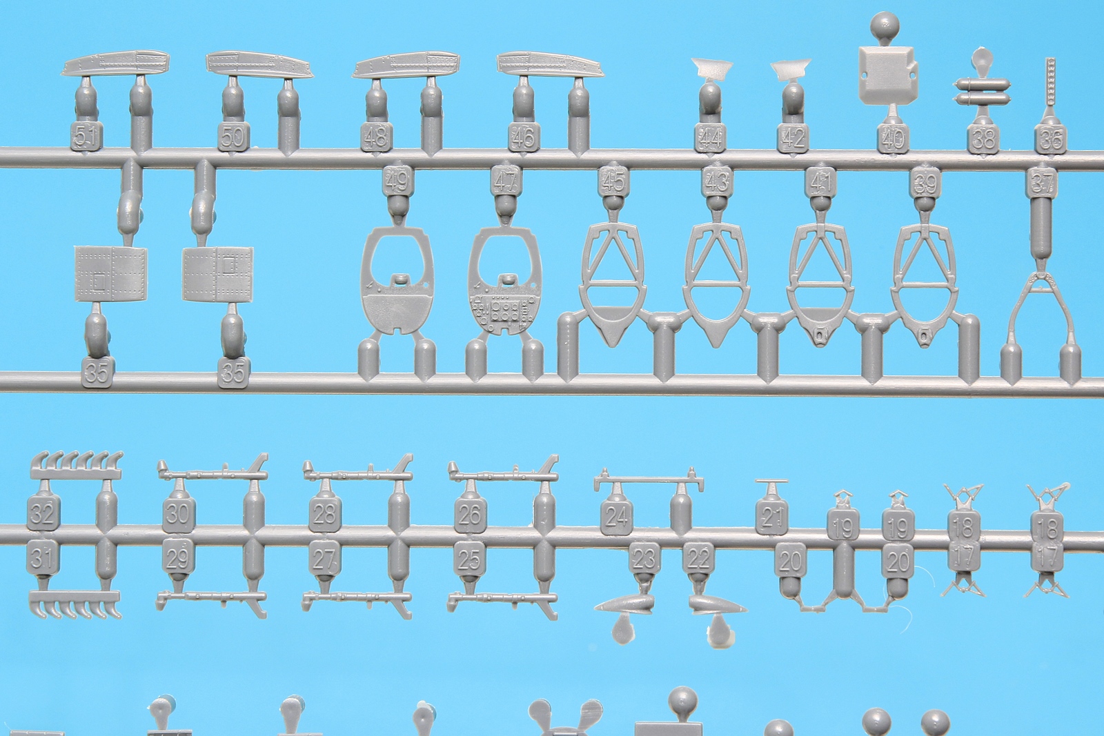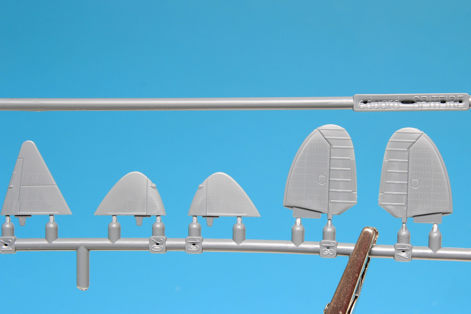 Na to, kolik již bylo vydáno stavebnic Spitfirů, tak jsou výlisky téměř bez otřepů a zaniklých detailů. Přesazení dělící roviny je téměř neznatelný, avšak základní začištění bude třeba. Vzhledem k tomu, že jsme na ModelWebu "sedminkové" Spitfiry od Eduardu několikrát ukázali, tak není třeba více propírat.