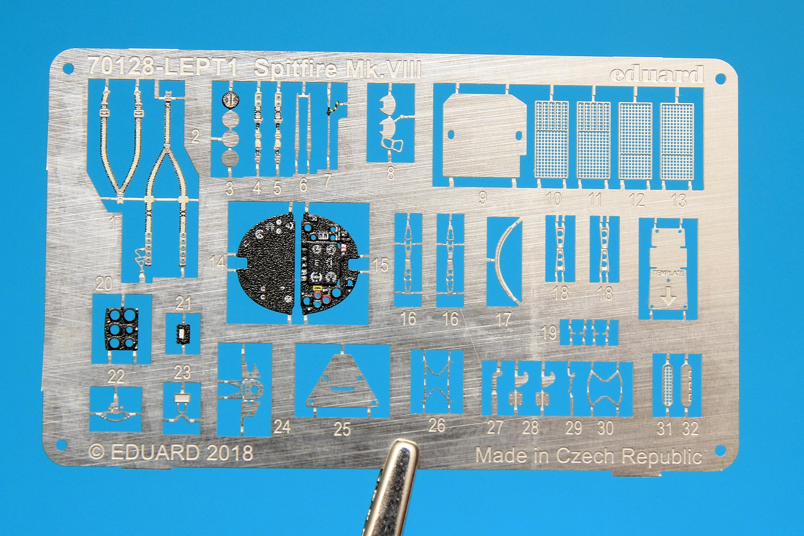 V leptech nalezneme drobnosti do kokpitu, mřížky chladičů a pár dílů exteriéru. Vyleptány jsou opět parádně. Na barvených dílech je vidět jistá krupička, ale vzhledem k měřítku je to zanedbatelné. Soutisk barev se zdá být v pořádku.
